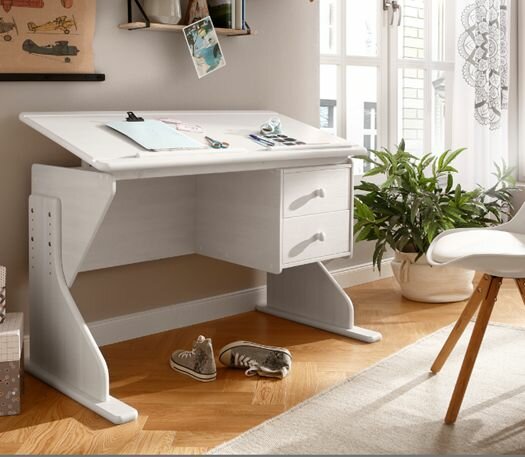 Купить Письменный стол Рио 2 ящика из массива сосны с регулировкой наклона, белый