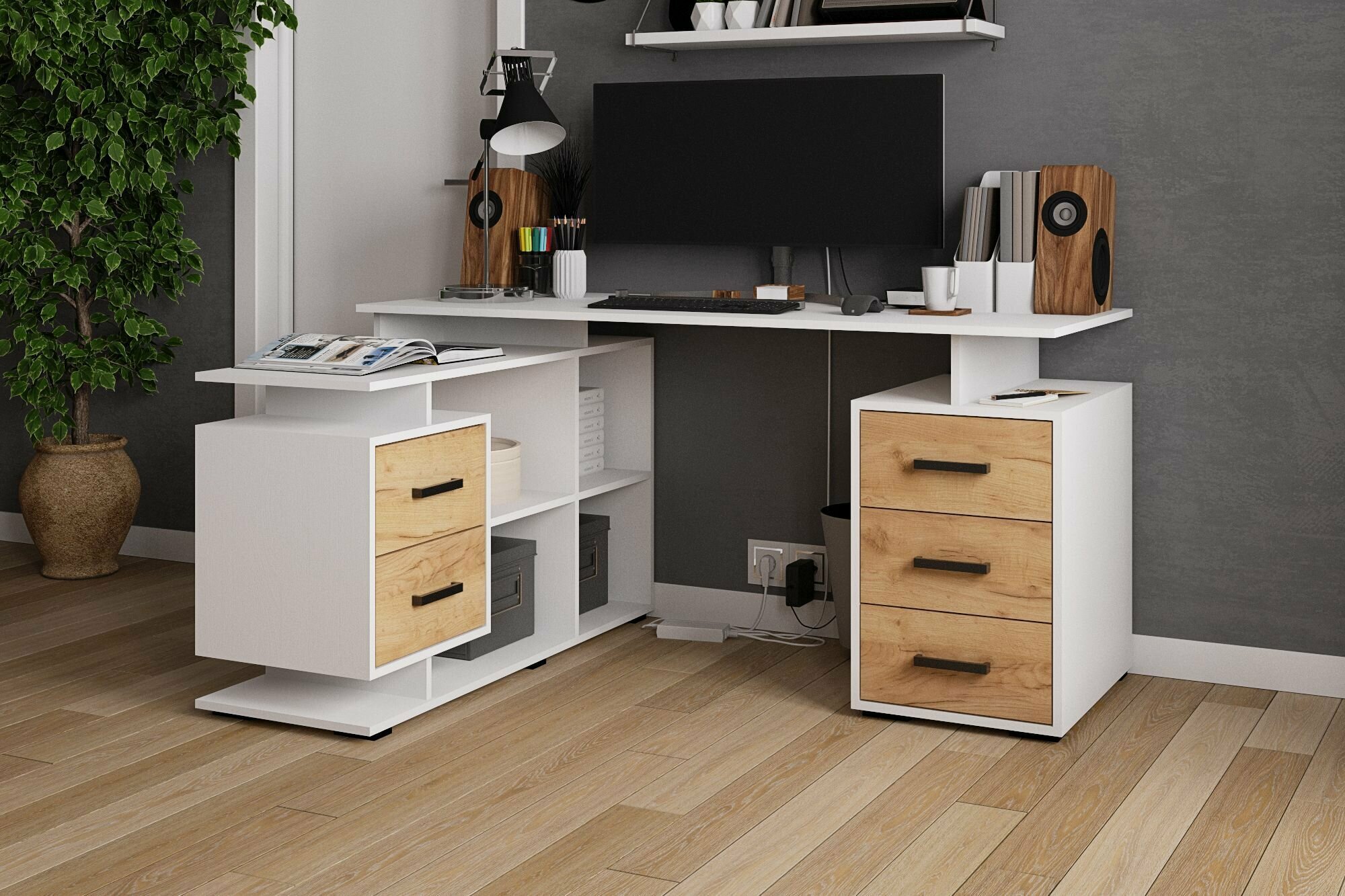 Компьютерный стол угловой СКМУ-3 дуб крафт золотой/белый интересное: