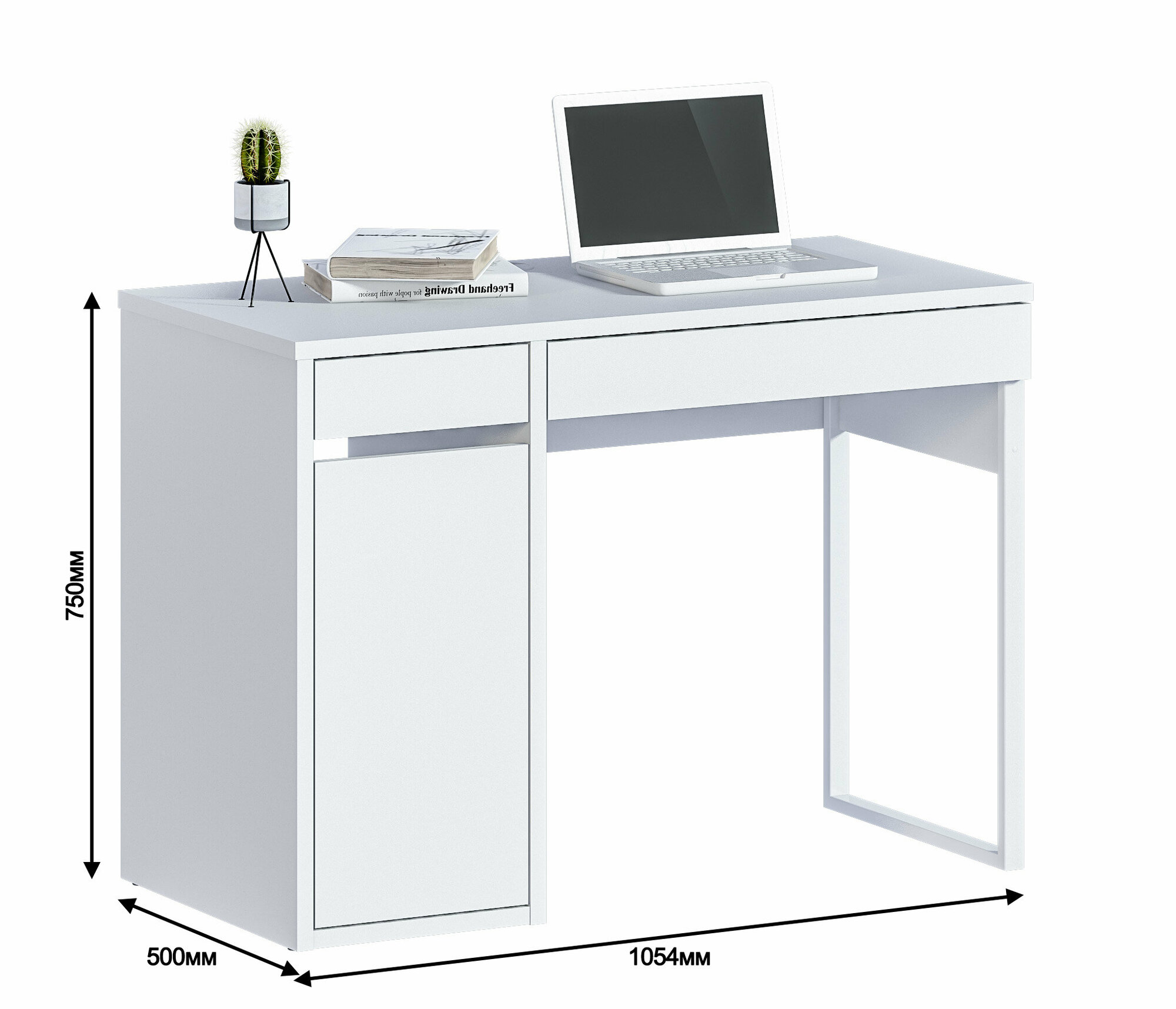 Купить Стол письменный компьютерный рабочий столплит Мика СБ-3309 с 2 ящиками, закрытой тумбой, белый 105х75х50 см