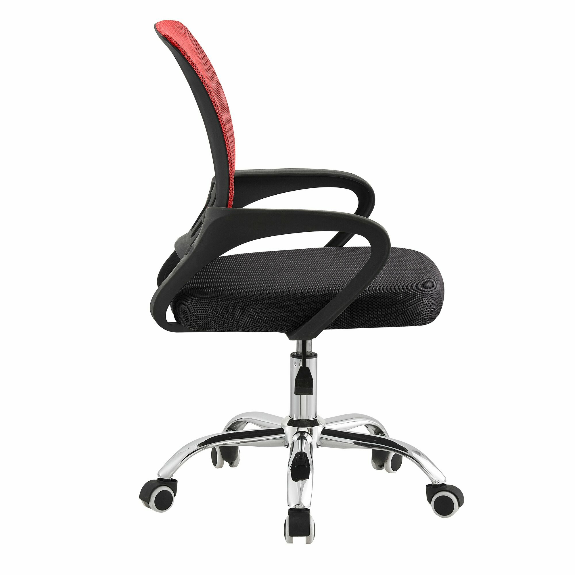 Купить Офисное кресло мягкое со спинкой на колесиках СтулБержи, сетка, ткань, верх - красный, низ - хром