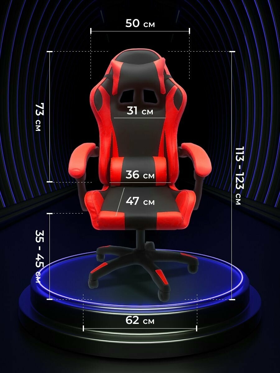 СохранитьКресло компьютерное игровое геймерское Classmark FT-7009 офисное, с подушками для спины и шеи, на колесиках, черно-красное, экокожа, газлифт интересное: