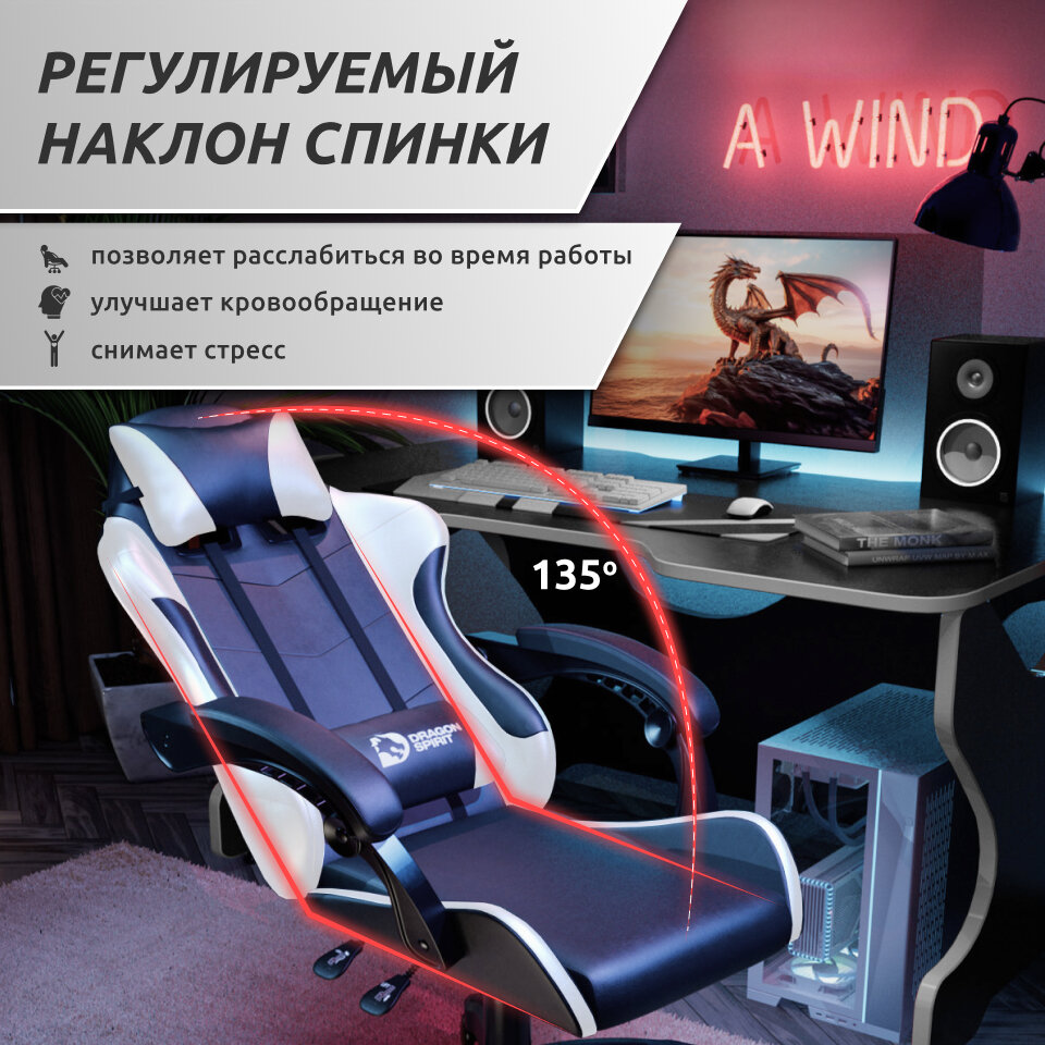 Кресло компьютерное игровое Dragon Spirit, белое интересное:
