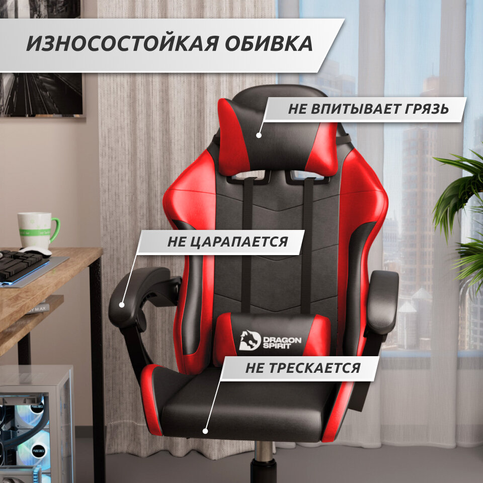 Кресло компьютерное игровое Dragon Spirit, красное интересное: