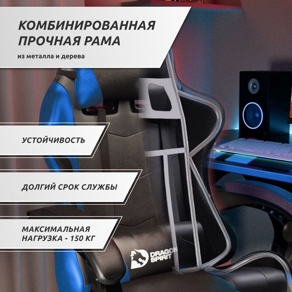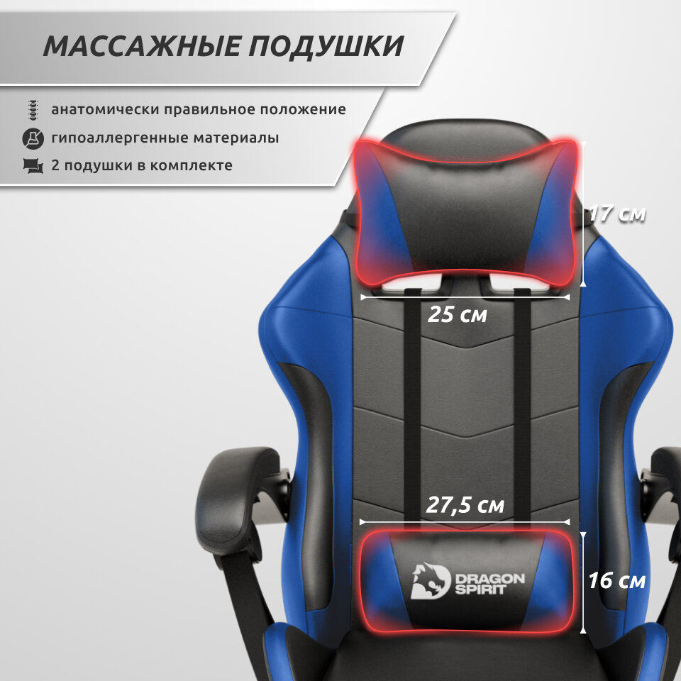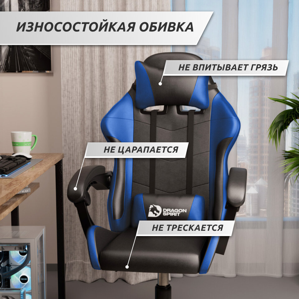 Кресло компьютерное игровое Dragon Spirit, синее интересное: