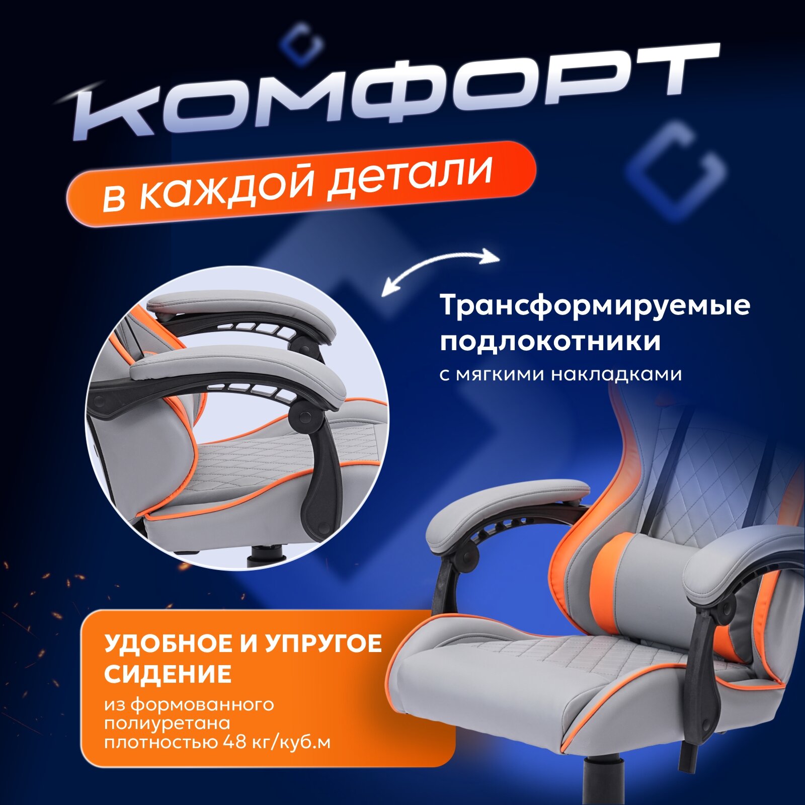 Игровое компьютерное кресло CHAIRMAN CH28, экокожа, серый/оранжевый интересное:
