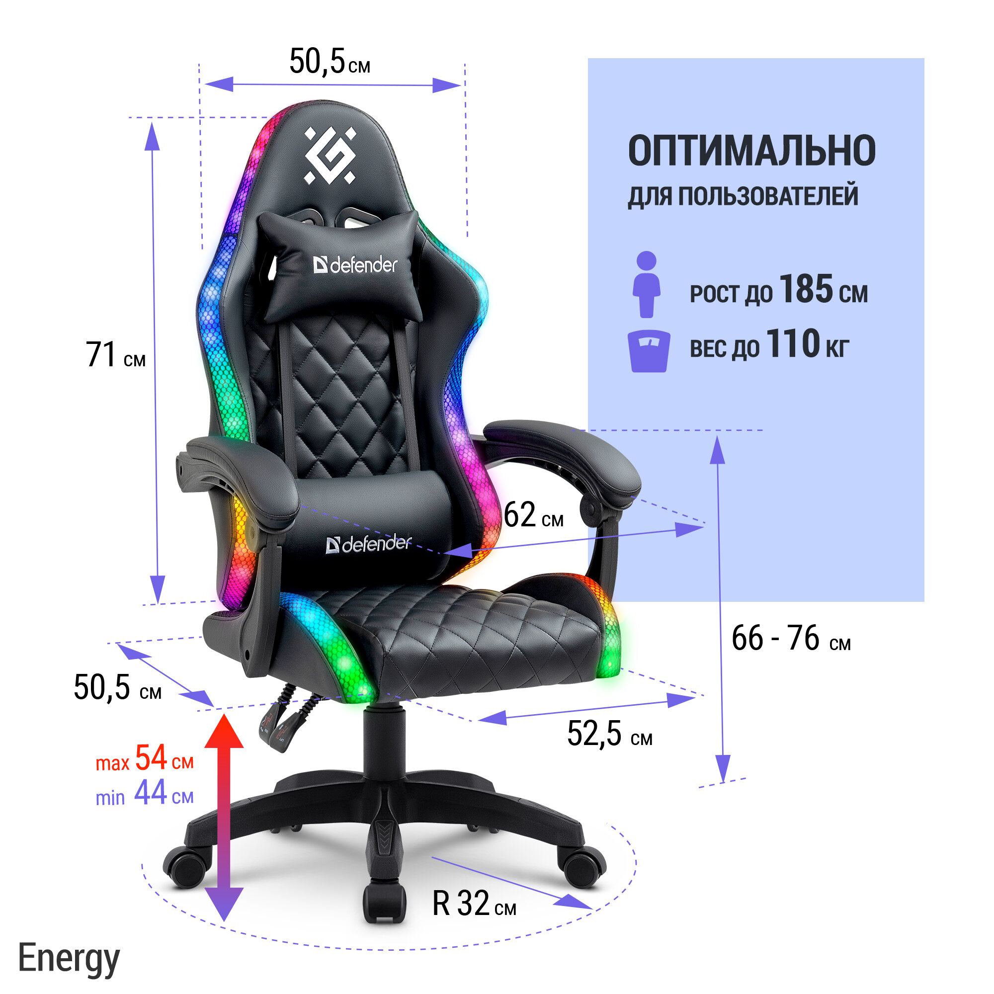 Игровое компьютерное кресло с RGB подсветкой Defender Energy