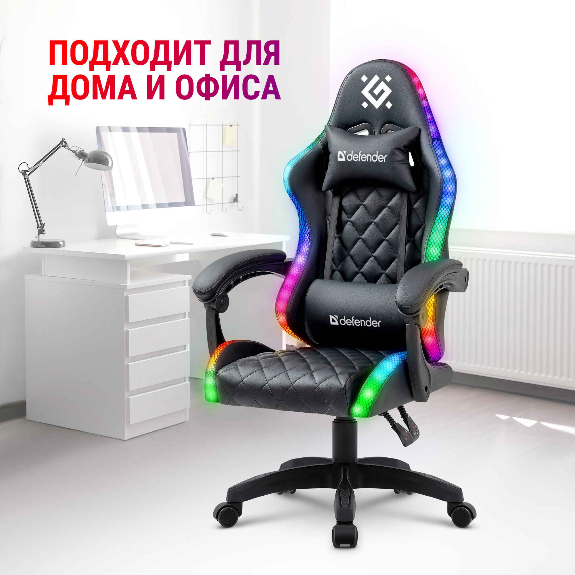 Игровое кресло / компьютерное кресло Defender Energy, RGB подсветка, класс 4, черный