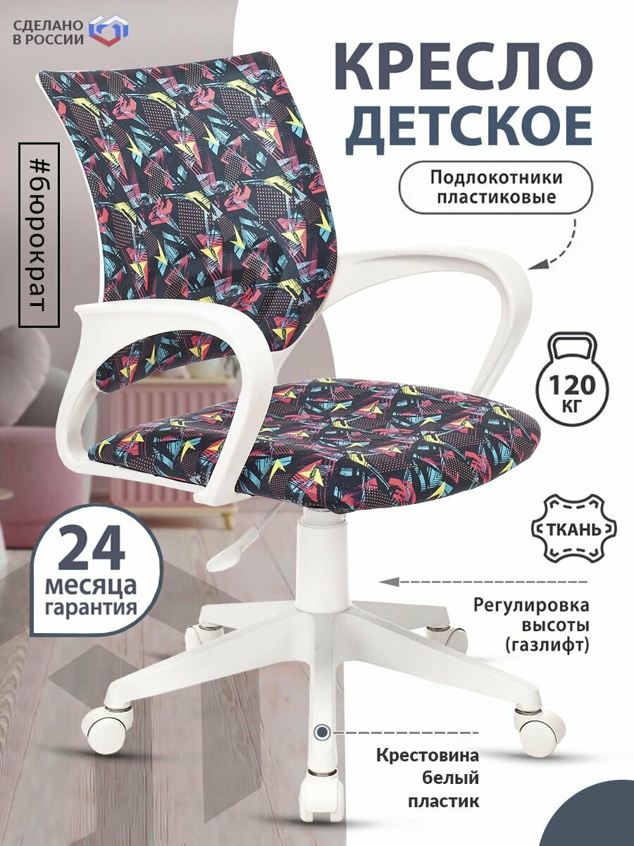 Кресло детское Бюрократ BUROKIDS 1 W мультиколор геометрия крестовина пластик пластик белый