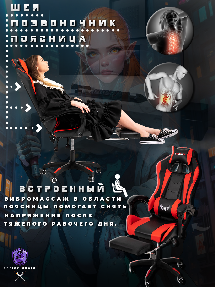 Кресло для геймеров компьютерное с вибро-массажем подножкой