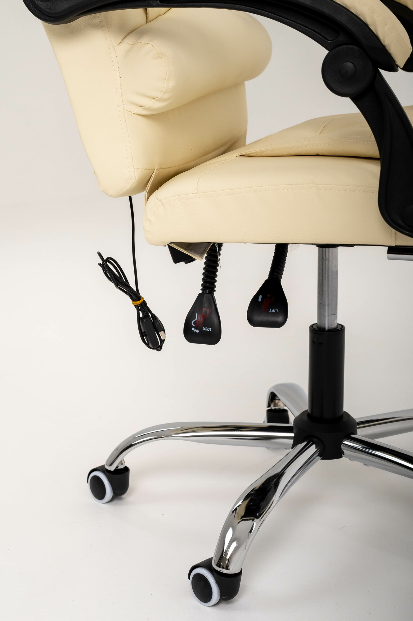 | Функциональные особенности | мягкие подлокотники, мягкое сиденье, прорезиненные колесики, фиксация спинки в любом положении, функция массажа |