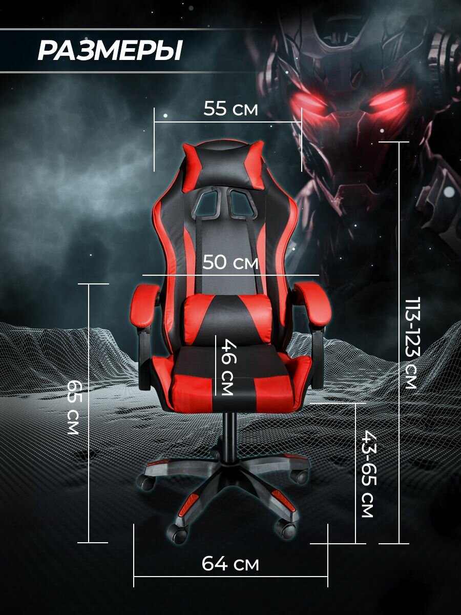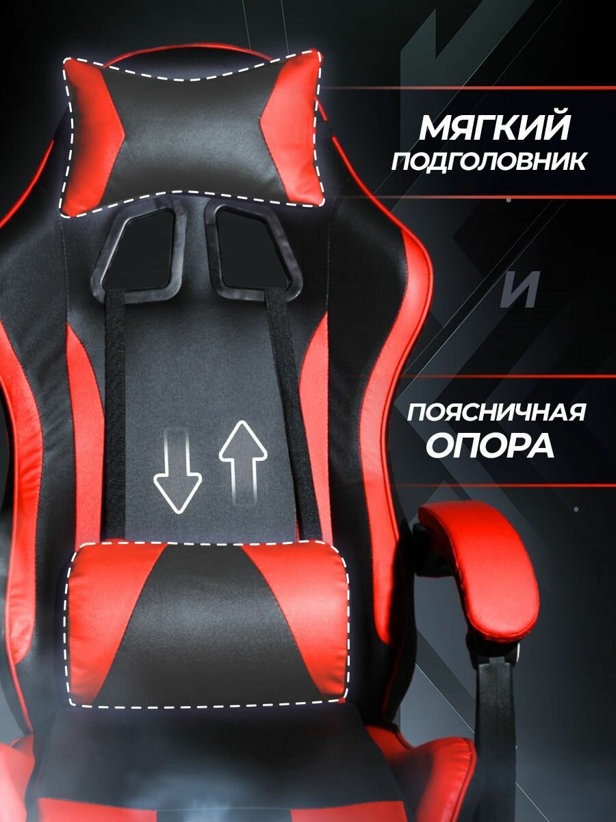 Кресло компьютерное игровое геймерское Classmark FT-055B офисное с подушками для спины и шеи на колесиках, черно-красное, экокожа, газлифт интересное: