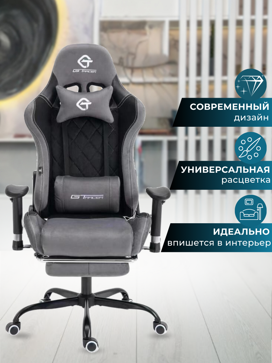 Игровое компьютерное кресло с подставкой для ног (серый цвет с черным акцентом) интересное: