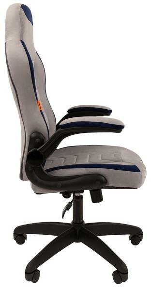 Игровое компьютерное кресло CHAIRMAN GAME 50, велюр, серый/синий, с откидными подлокотниками