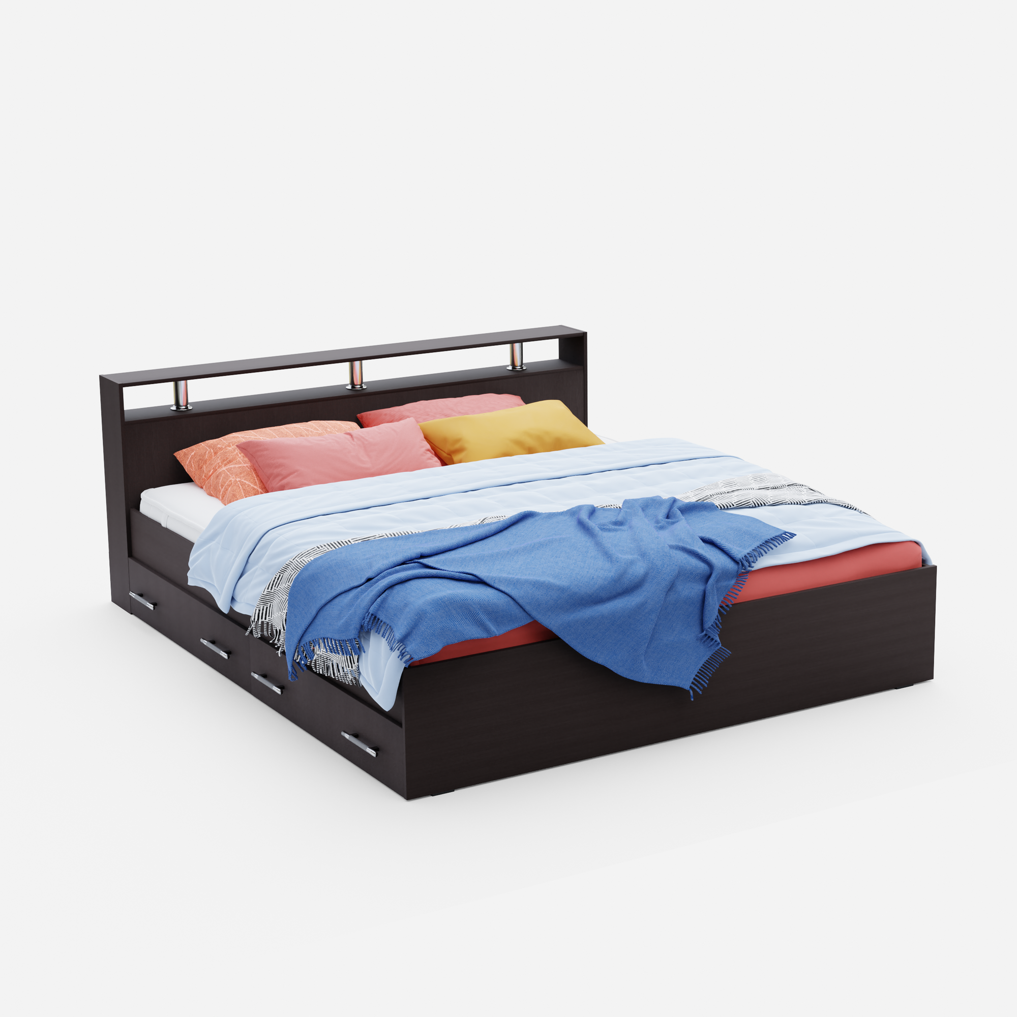 Кровать двуспальная Пора Спать Арина с ящиками и основанием ДСП, Венге, спальное место: 200х160 см, габариты: 220х167 см