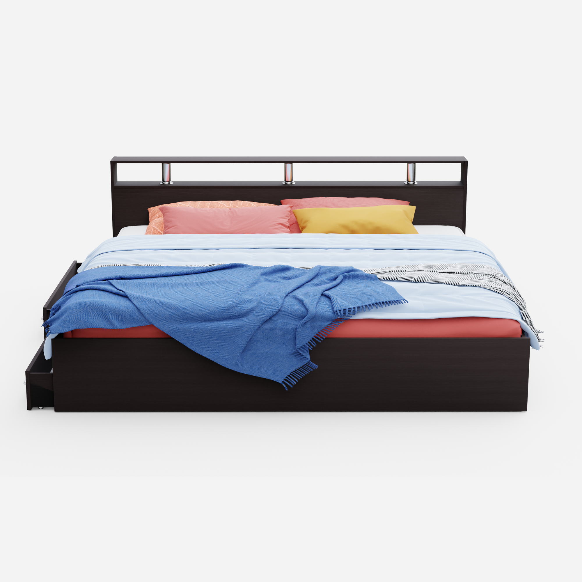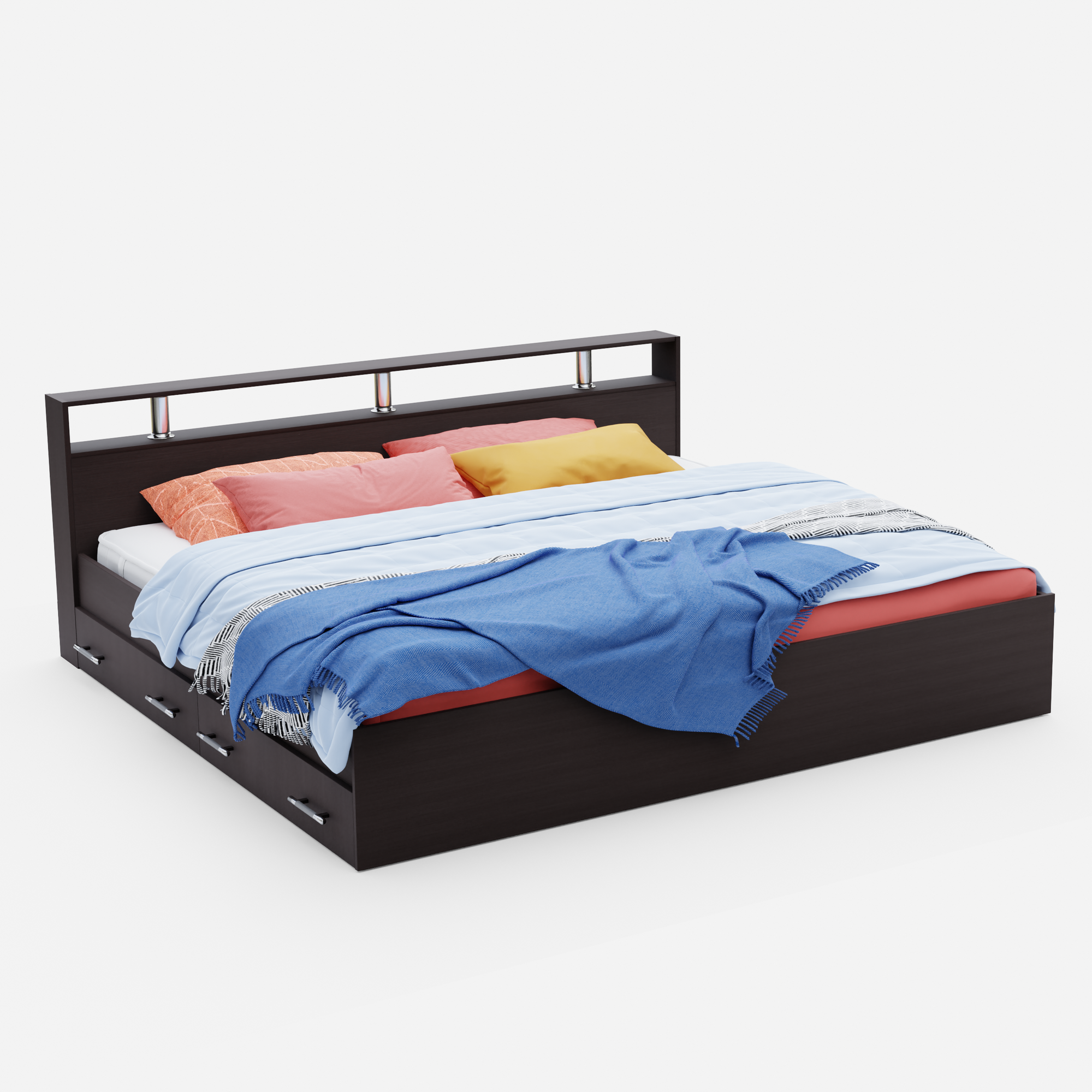 Кровать двуспальная Пора Спать Арина с ящиками и основанием ДСП, Венге, спальное место: 200х160 см, габариты: 220х167 см