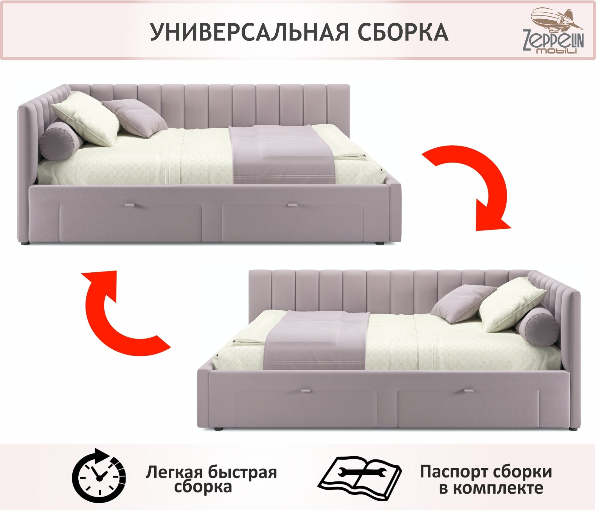 Купить Кровать-тахта Milena 120х200 лиловая с ящиками, 120х200, мягкая спинка из велюра, с ортопедическими ламелями, с ящиками для хранения