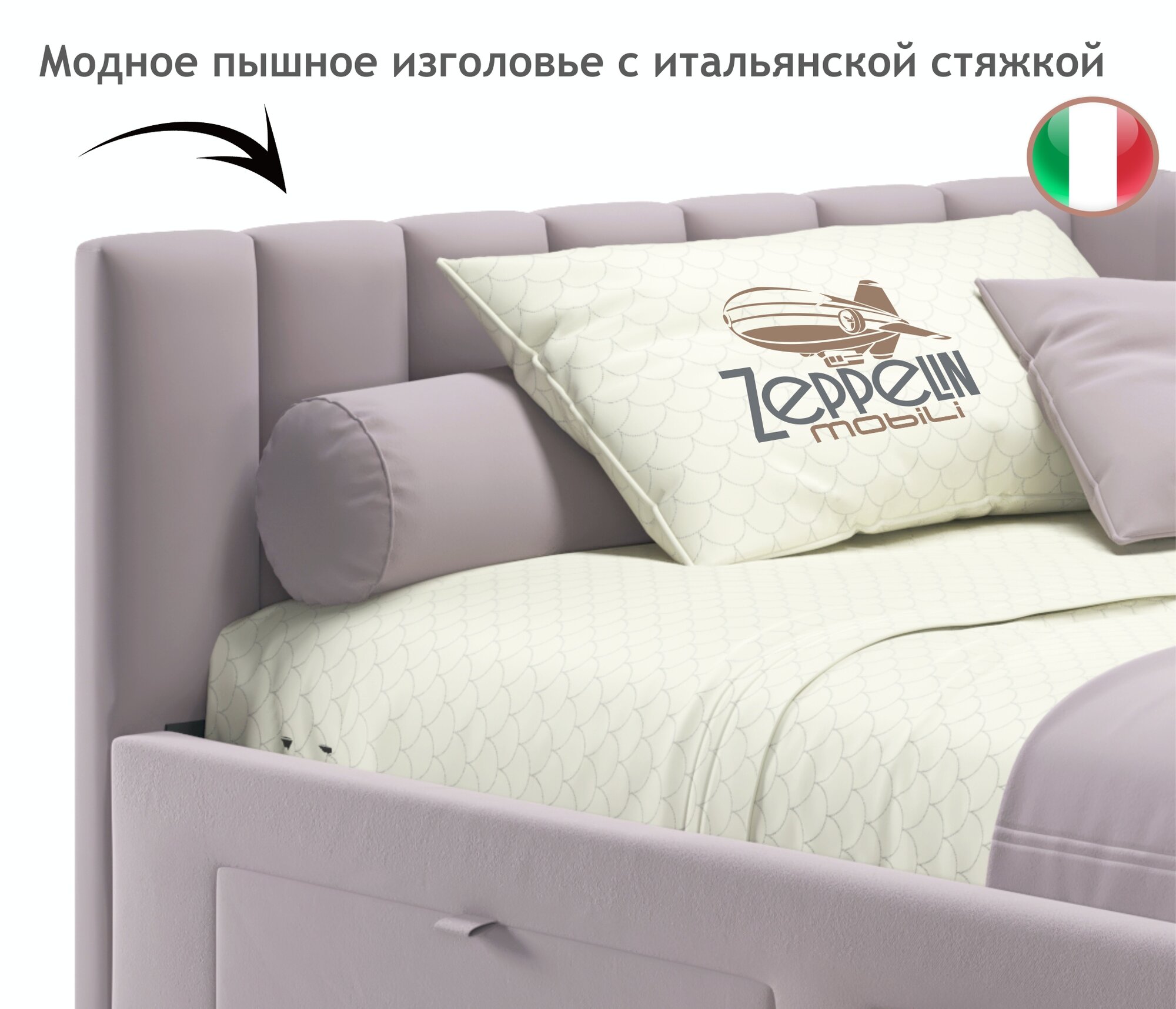 Кровать Milena Zeppelin 120х200 лиловая с ящиками, из велюра, с ортопедическими ламелями