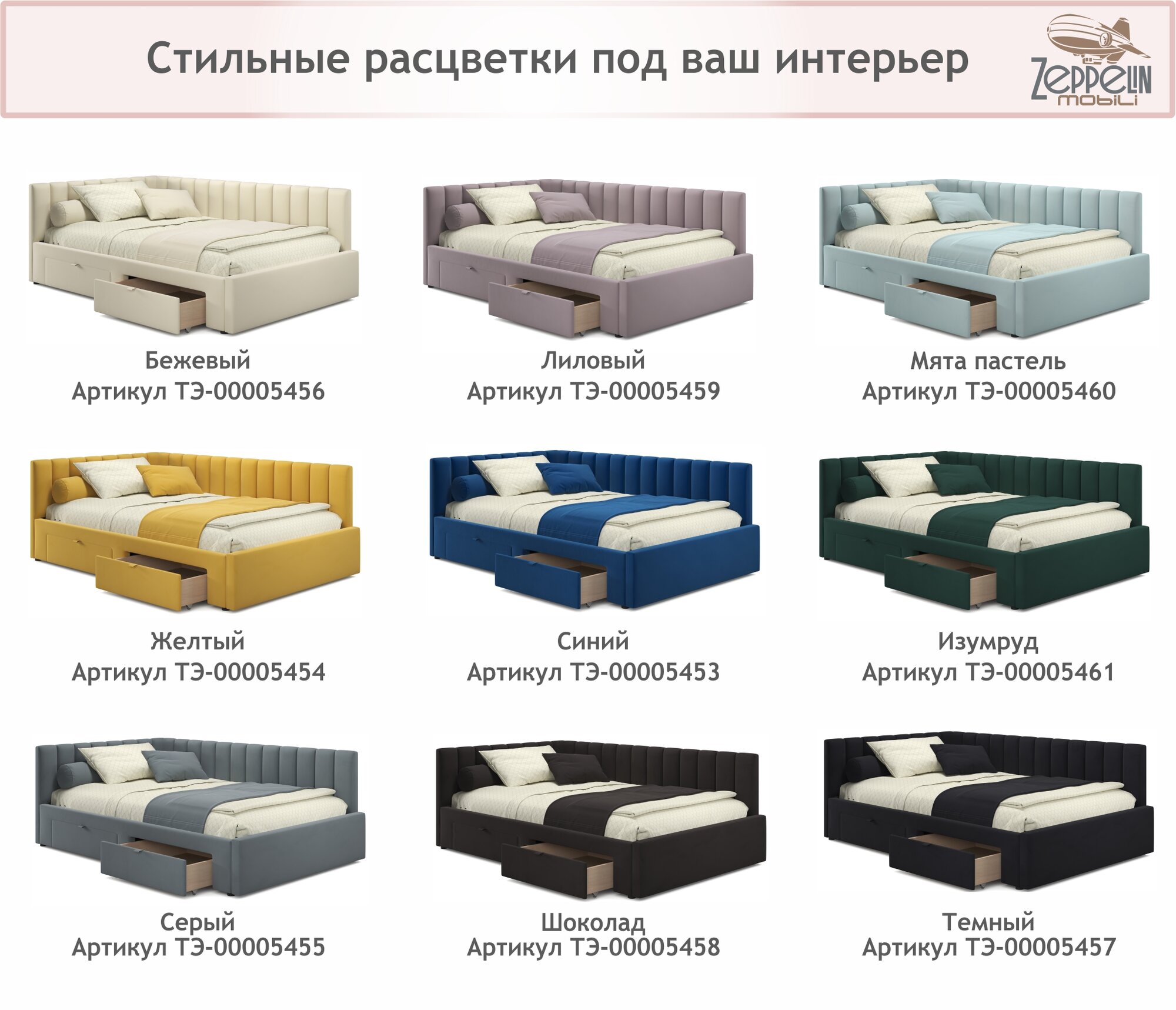 | Особенности | для детей, мягкое изголовье, основание под матрас, с диваном, с изножьем, с ящиком для белья |