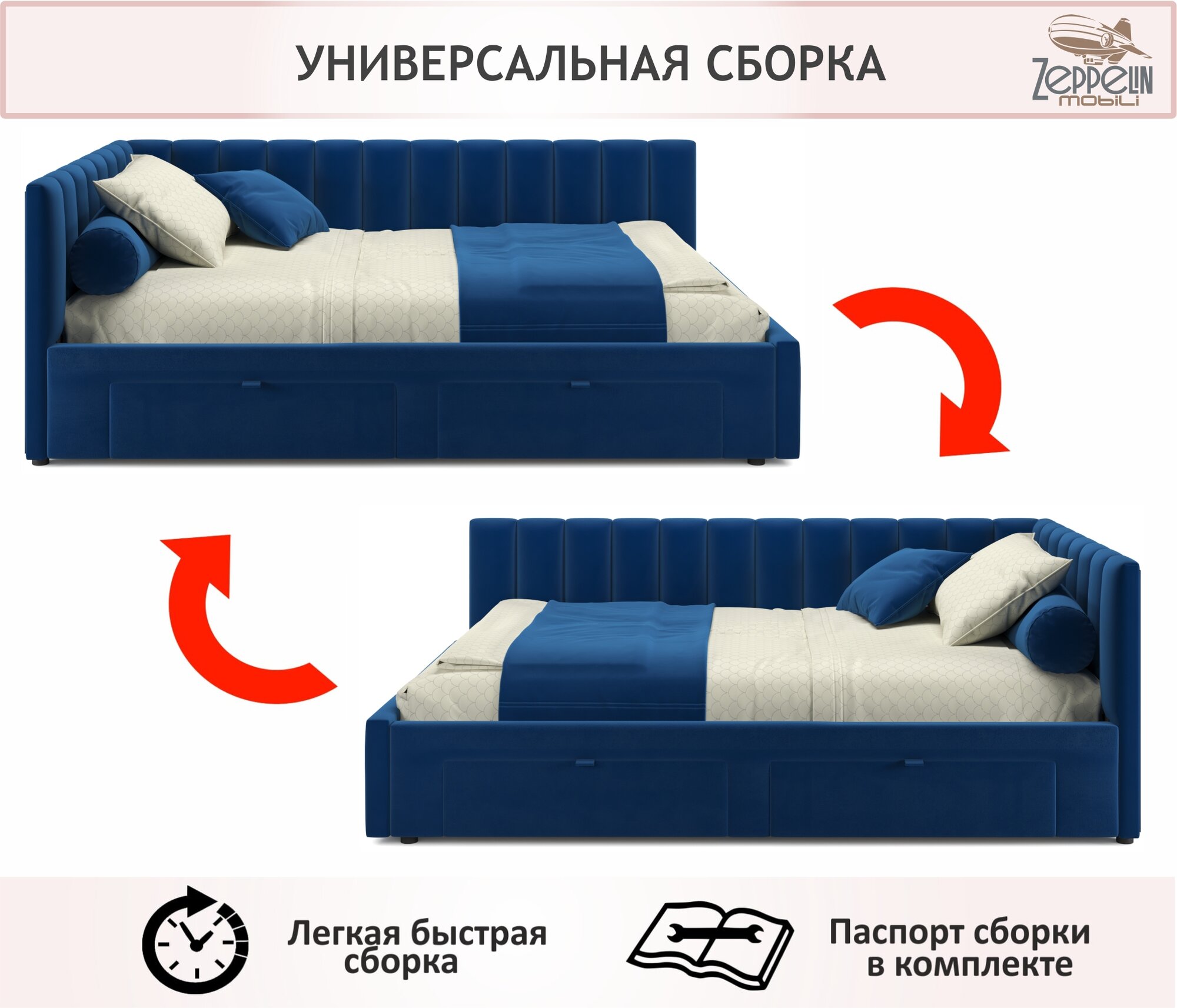 СохранитьКровать-тахта Milena 120х200 синяя с ящиками, 120х200, мягкая спинка из велюра, с ортопедическими ламелями, с ящиками для хранения интересное: