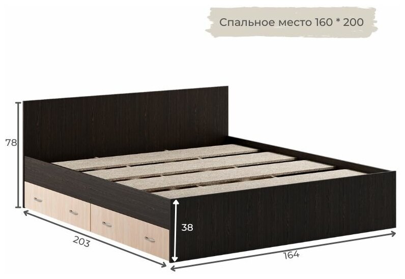 Кровать Виктория 160х200 венге/дуб с ящиками интересное: