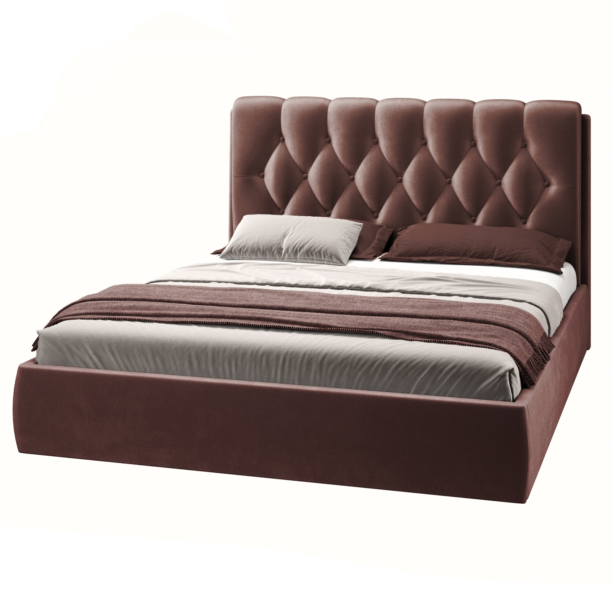 Двуспальная кровать 160х200 см с подъемным механизмом, Империя с мягким изголовьем для дома и спальни, ортопедическое основание, ламели усиленные, ящик для белья, бархат коричневый, Ами Мебель Беларусь