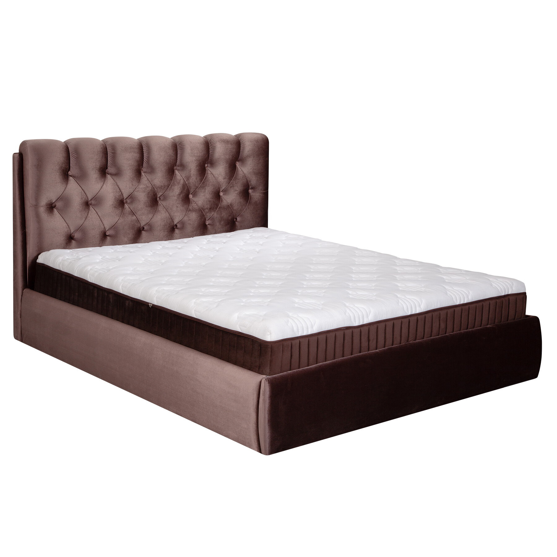 Двуспальная кровать 160х200 см с подъемным механизмом Империя для дома и спальни, бархат коричневый, Ами Мебель