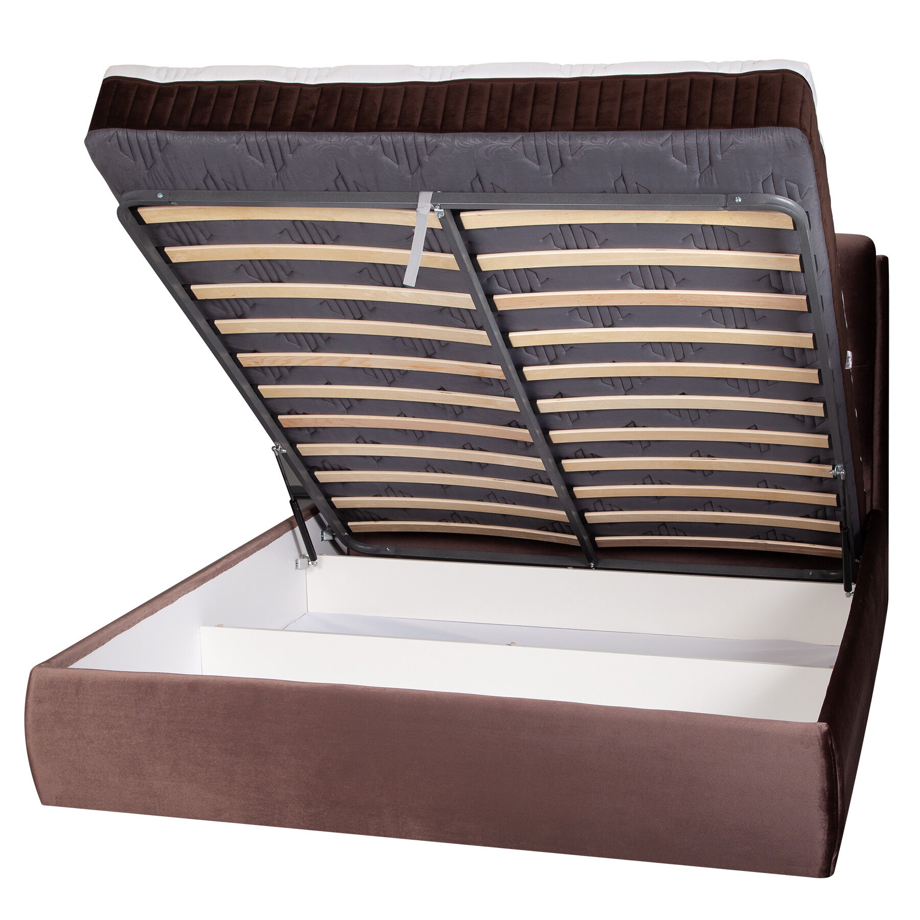 СохранитьКровать 160х200 с подъемным механизмом двуспальная, Империя с мягким изголовьем для дома и спальни, ортопедическое основание, ламели усиленные, ящик для белья, бархат коричневый, Ами Мебель Беларусь интересное: