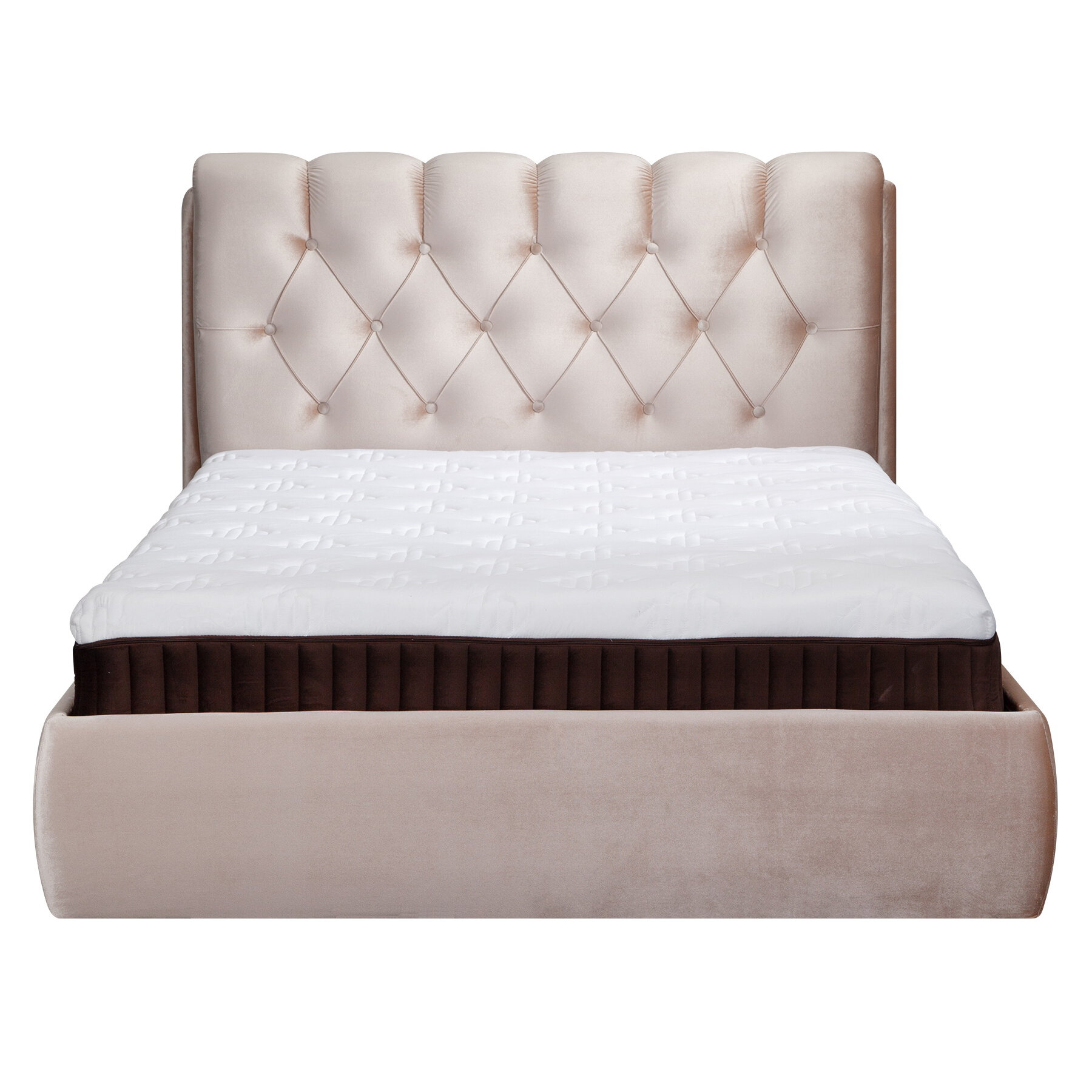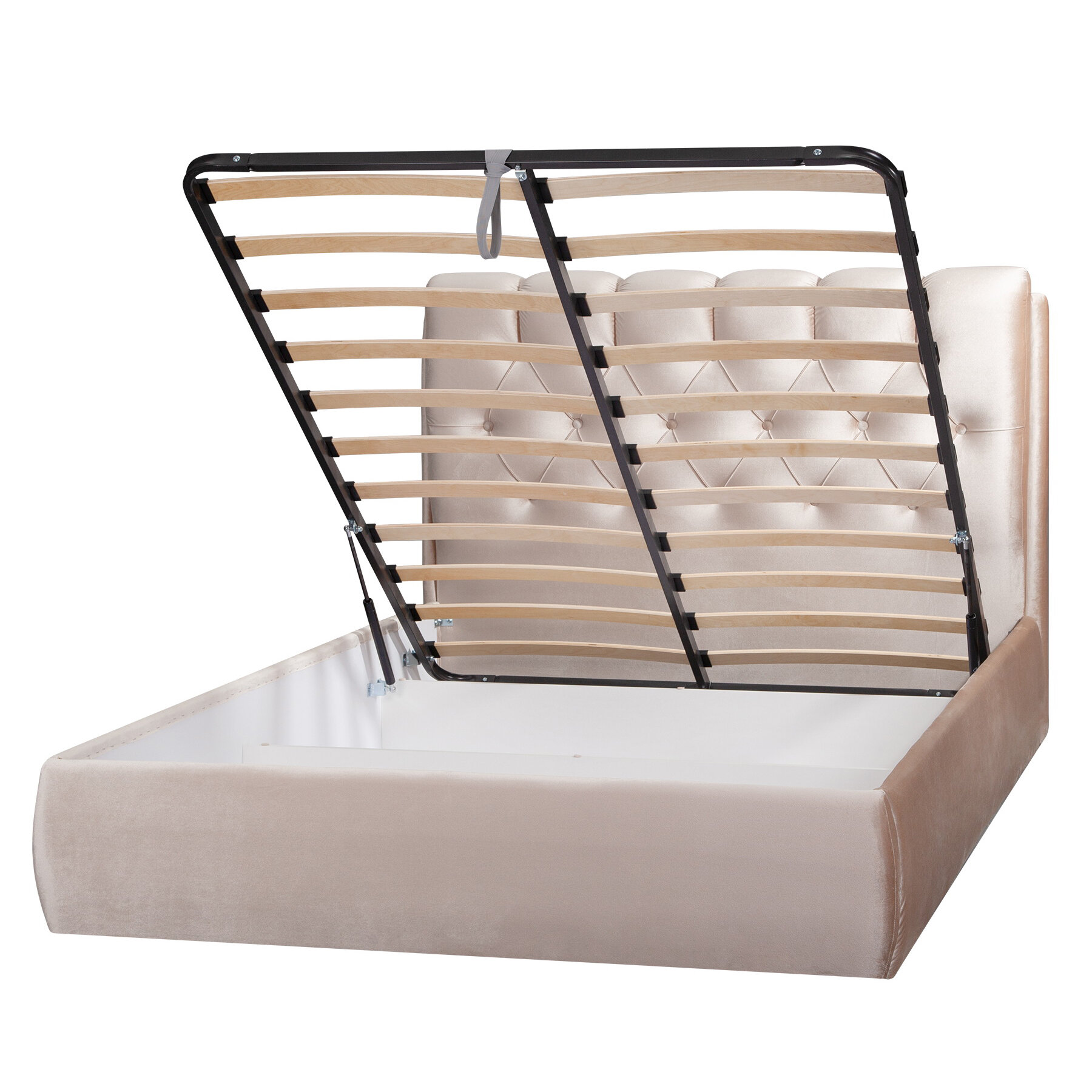 Кровать двуспальная 180х200 с подъемным механизмом, Империя с мягким изголовьем для дома и спальни, ортопедическое основание, ламели усиленные, ящик для белья, бархат бежевый, Ами Мебель Беларусь