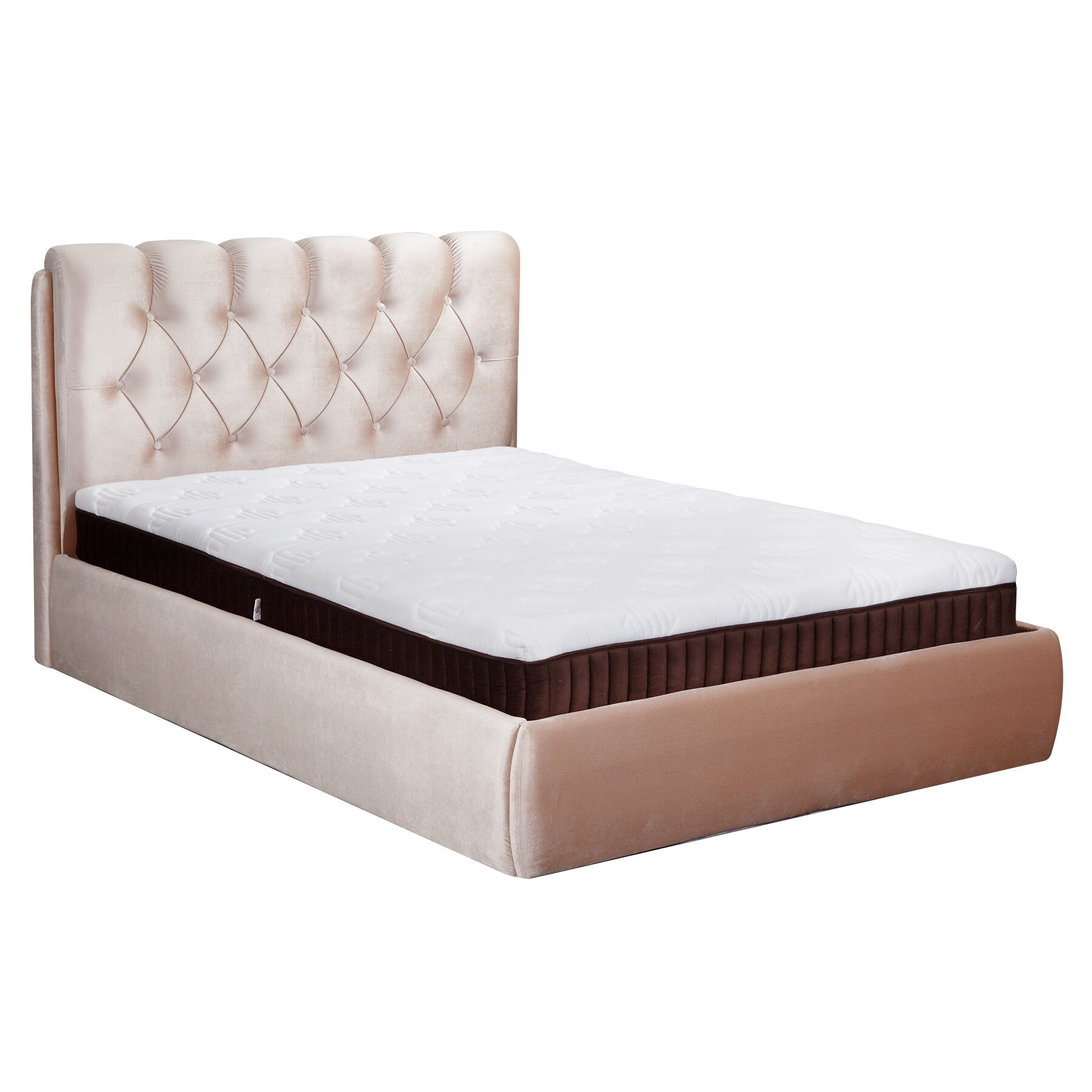 Двуспальная кровать 140х200 см с подъемным механизмом Империя для дома и спальни, бархат бежевый, Ами Мебель