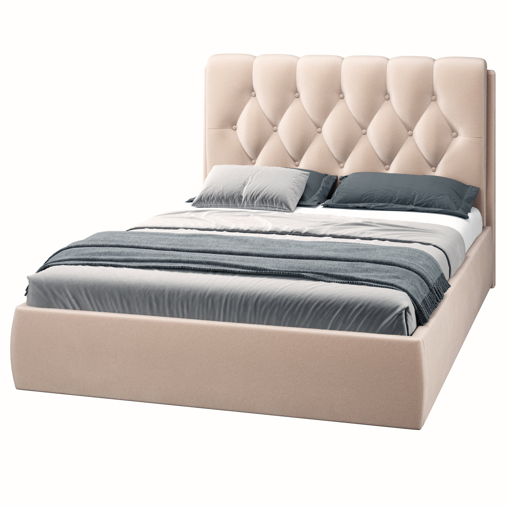Двуспальная кровать 140х200 см с подъемным механизмом Империя для дома и спальни, бархат серый, Ами Мебель