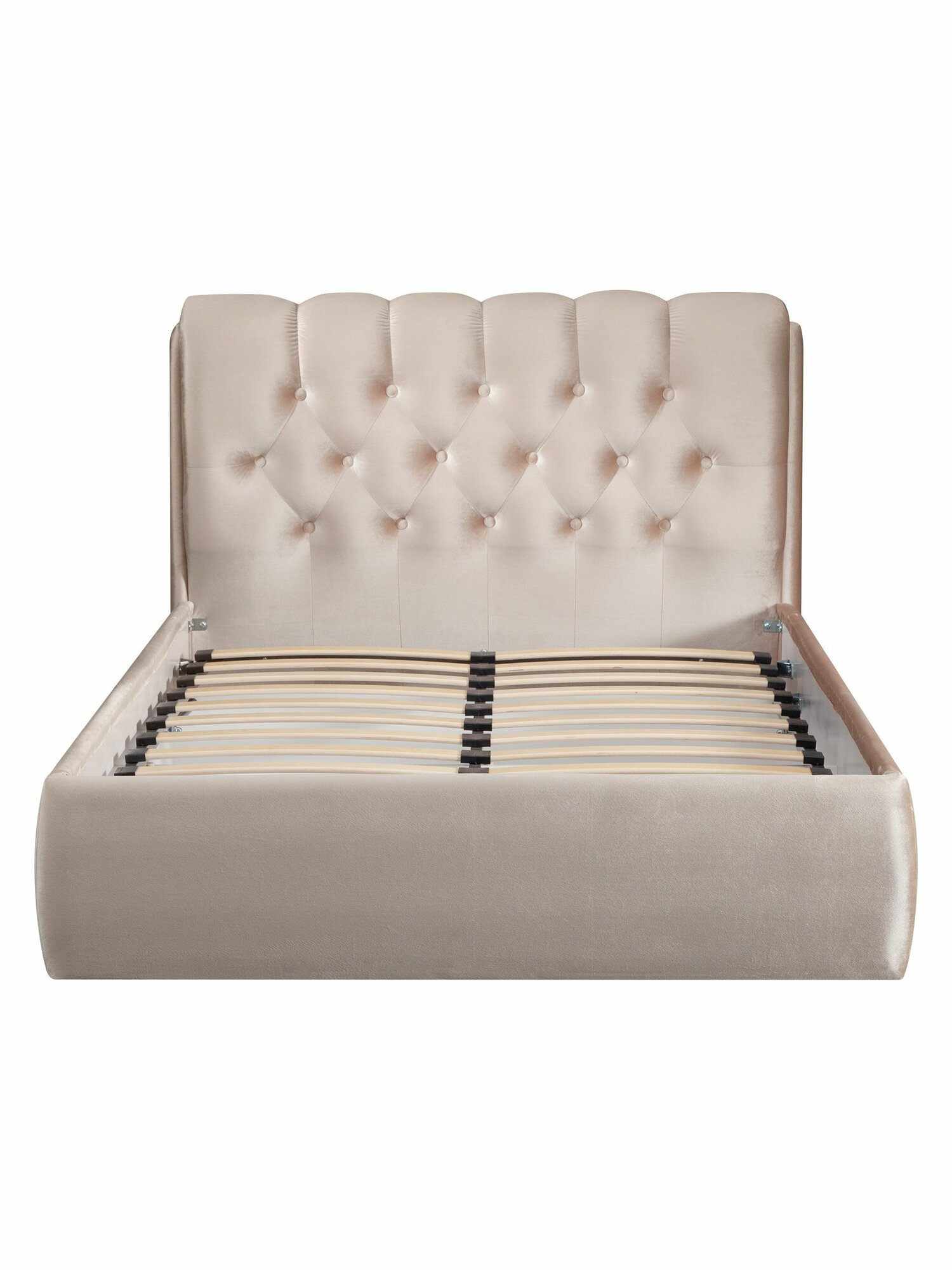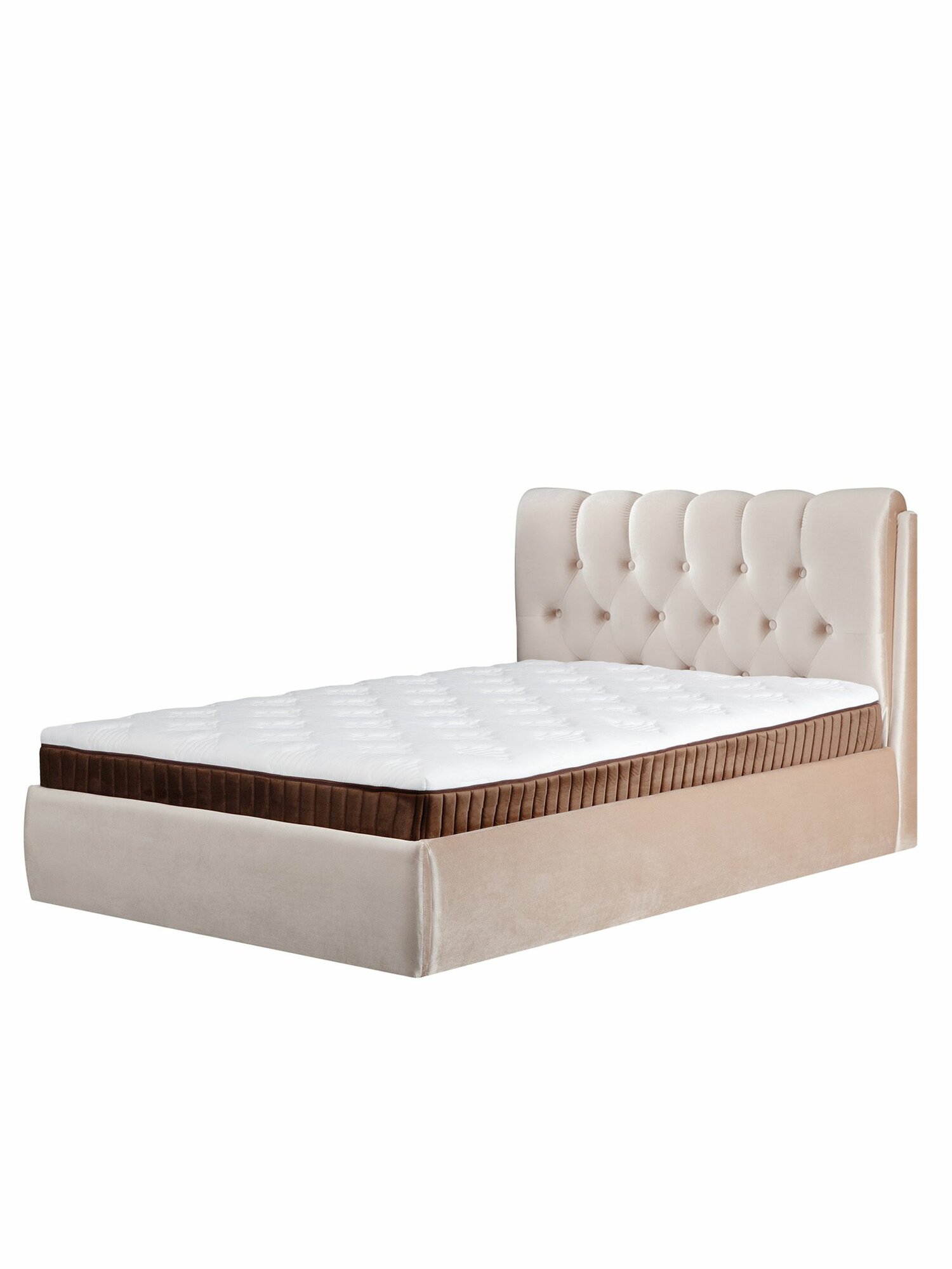 Двуспальная кровать 140х200 см с подъемным механизмом Империя для дома и спальни, бархат бежевый, Ами Мебель