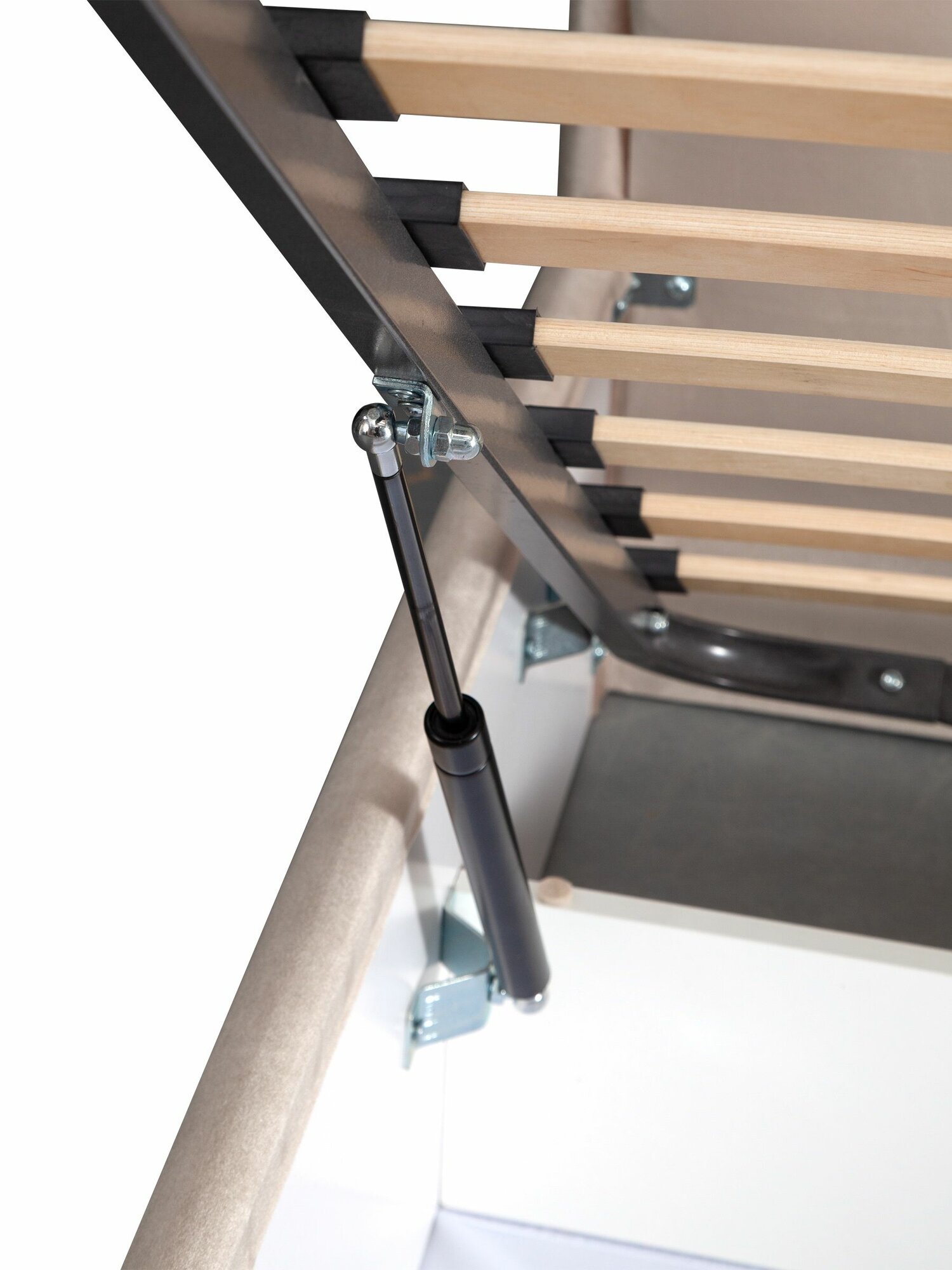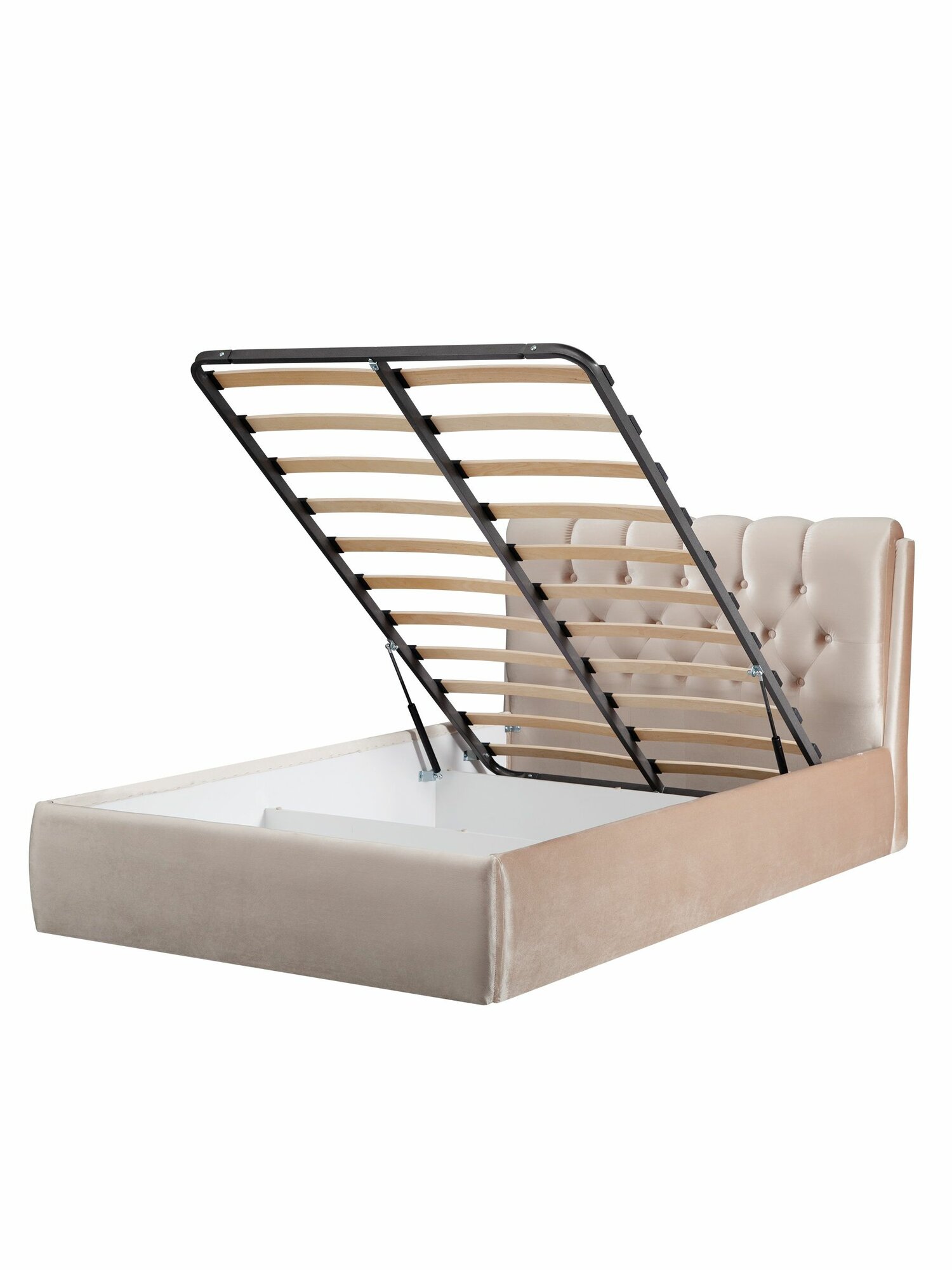 Двуспальная кровать 140х200 см с подъемным механизмом, Империя с мягким изголовьем для дома и спальни, ортопедическое основание, ламели усиленные, ящик для белья, бархат бежевый, Ами Мебель Беларусь