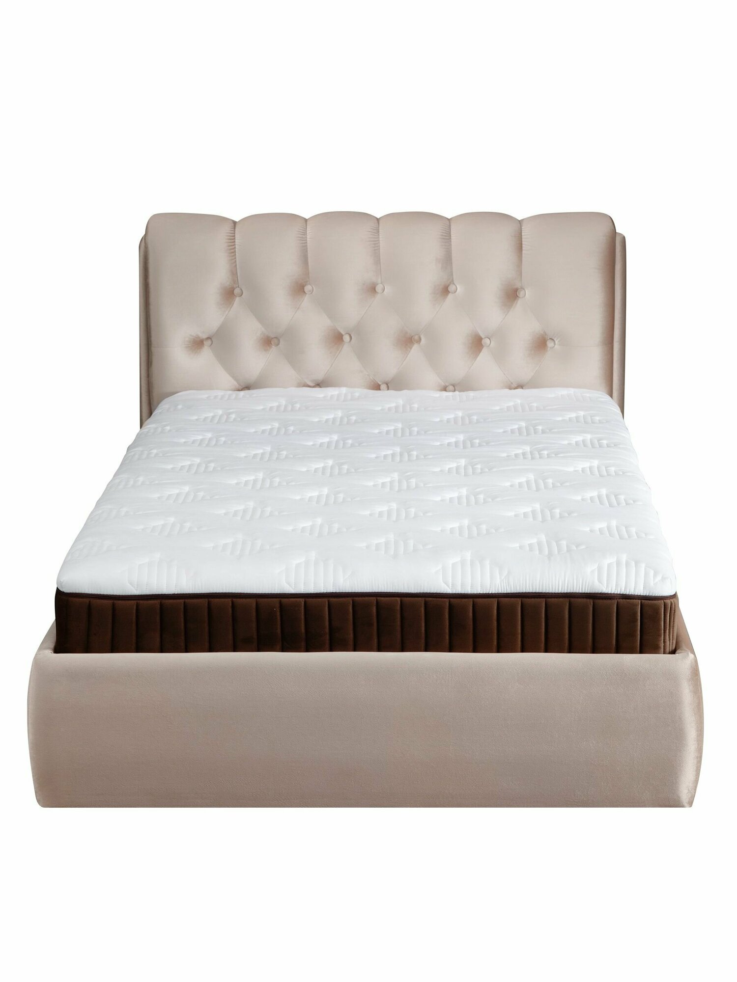 Двуспальная кровать 160х200 см с подъемным механизмом Империя для дома и спальни, бархат бежевый, Ами Мебель