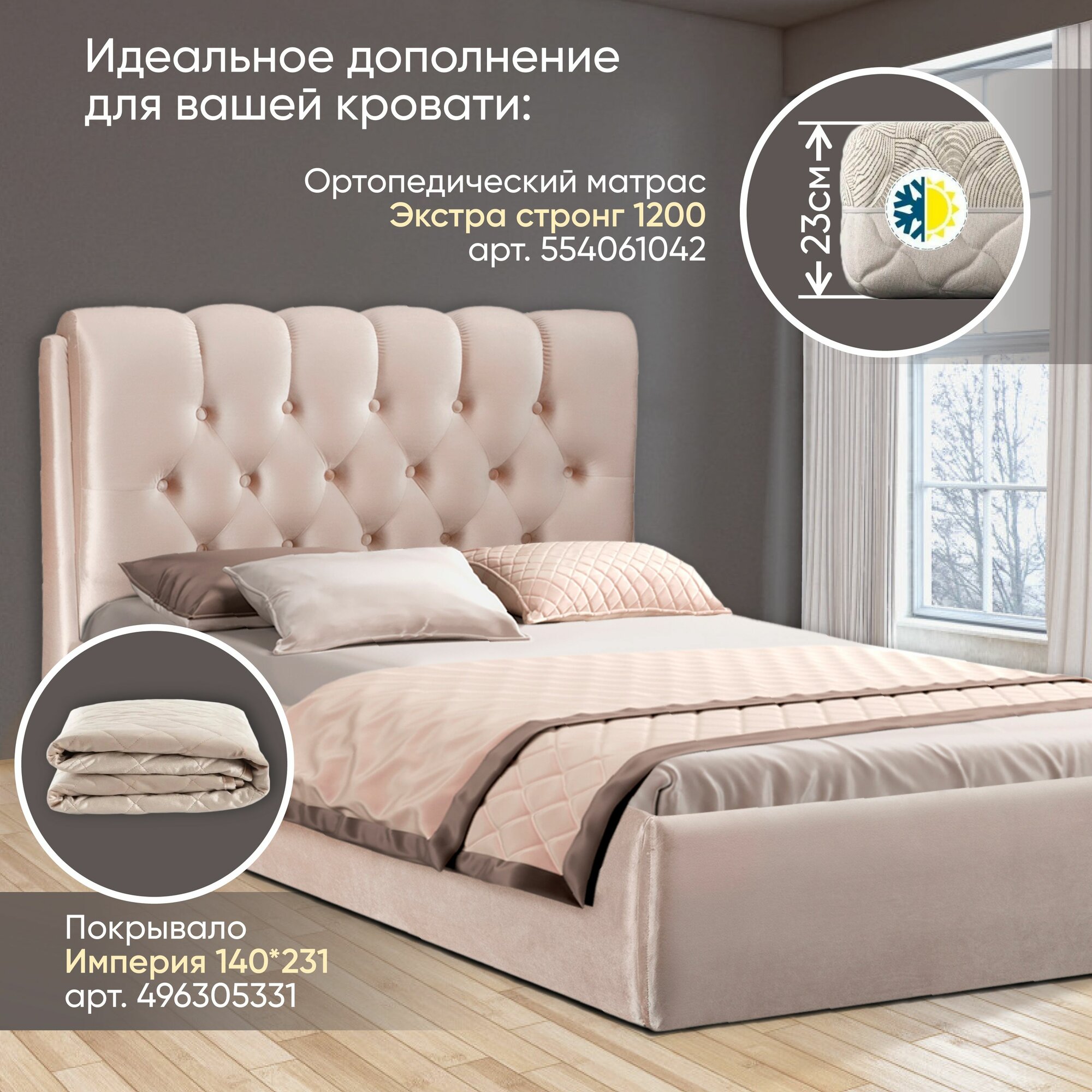 СохранитьПолутороспальная кровать 120х200 с подъемным механизмом, Империя с мягким изголовьем для дома, для спальни, ортопедическое основание, ламели усиленные, ящик для белья, бархат бежевый, Ами Мебель Беларусь интересное: