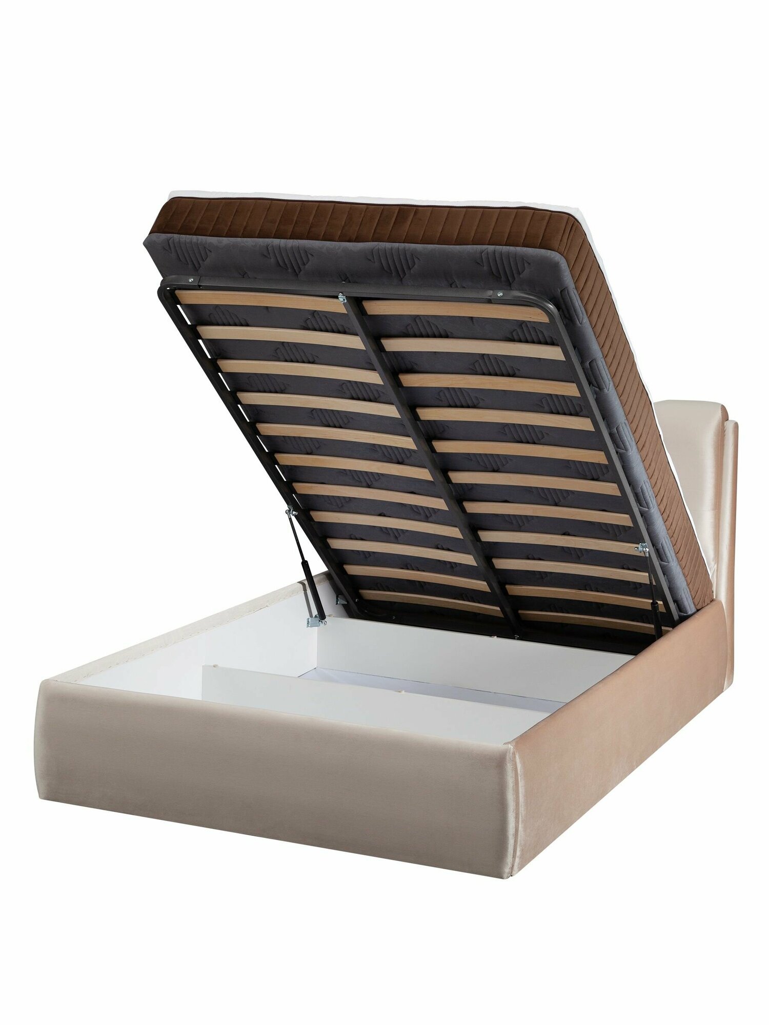 Кровать 160х200 с подъемным механизмом двуспальная, Империя с мягким изголовьем для дома и спальни, ортопедическое основание, ламели усиленные, ящик для белья, бархат бежевый, Ами Мебель Беларусь