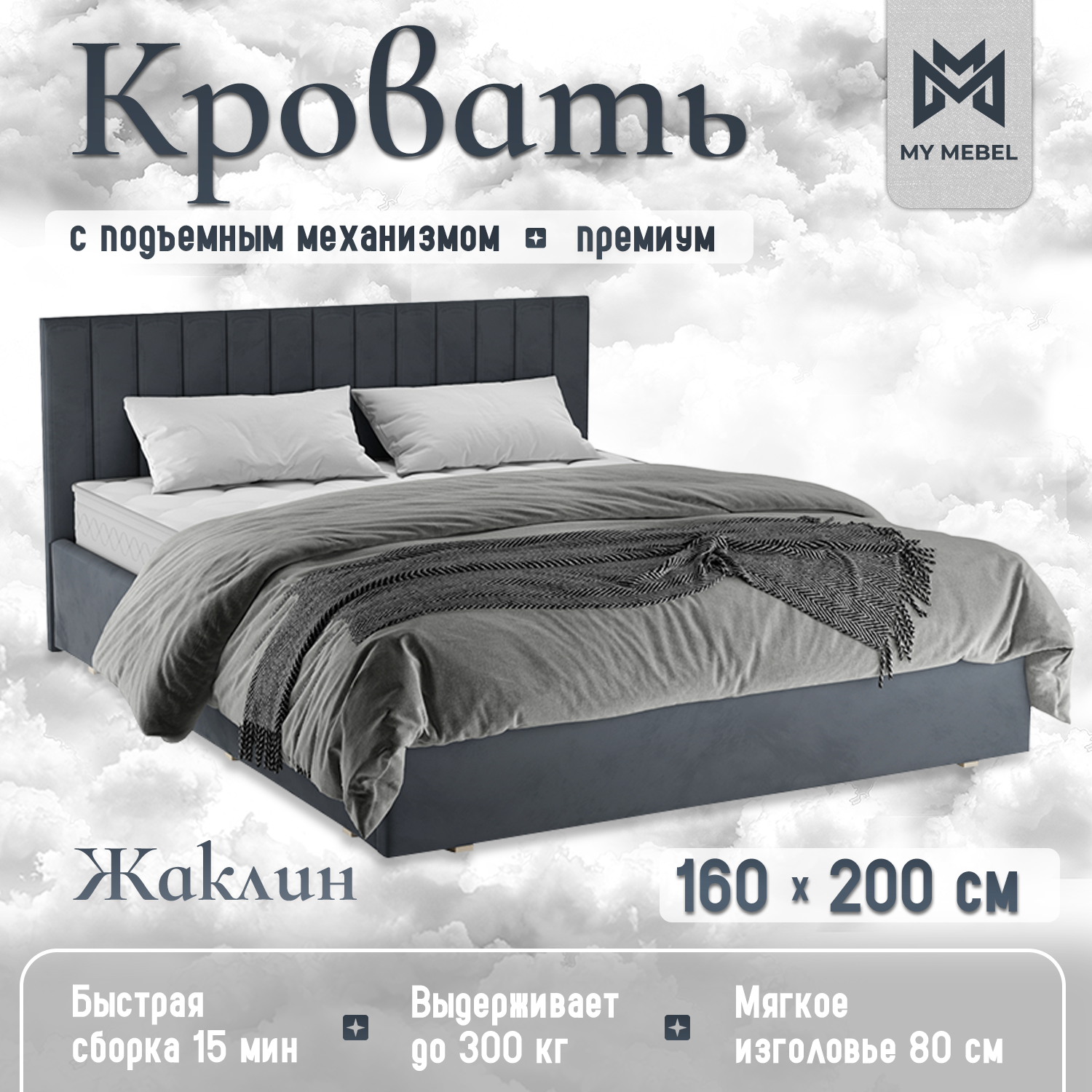 Комплект Жаклин, кровать 160/200 с подъемным механизмом, двуспальная в мягкой обивке, матрас