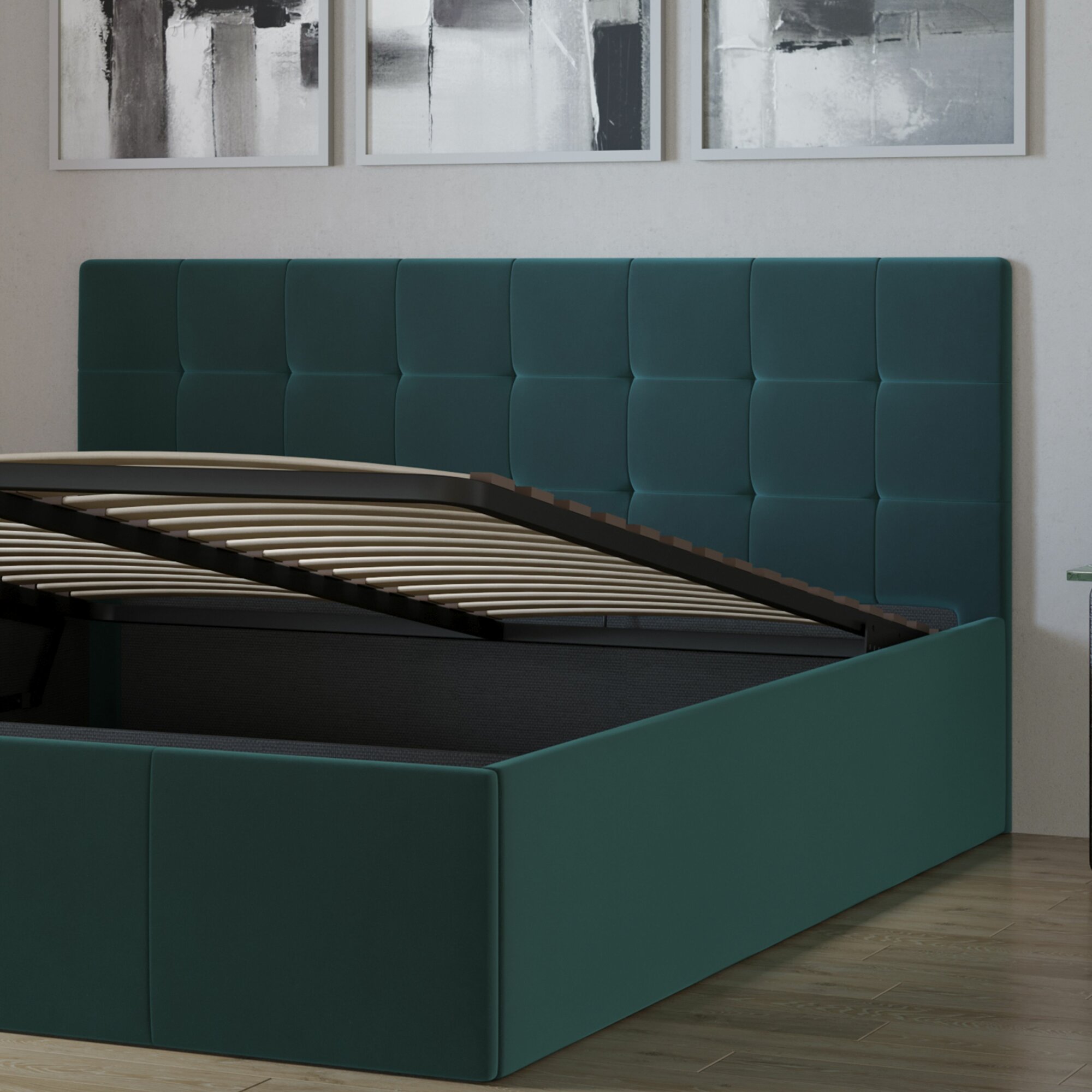Купить Кровать с подъемным механизмом, с мягкой обивкой и заглушиной зеленая 160х200 Эмма (Велюр Confetti Izumrud)