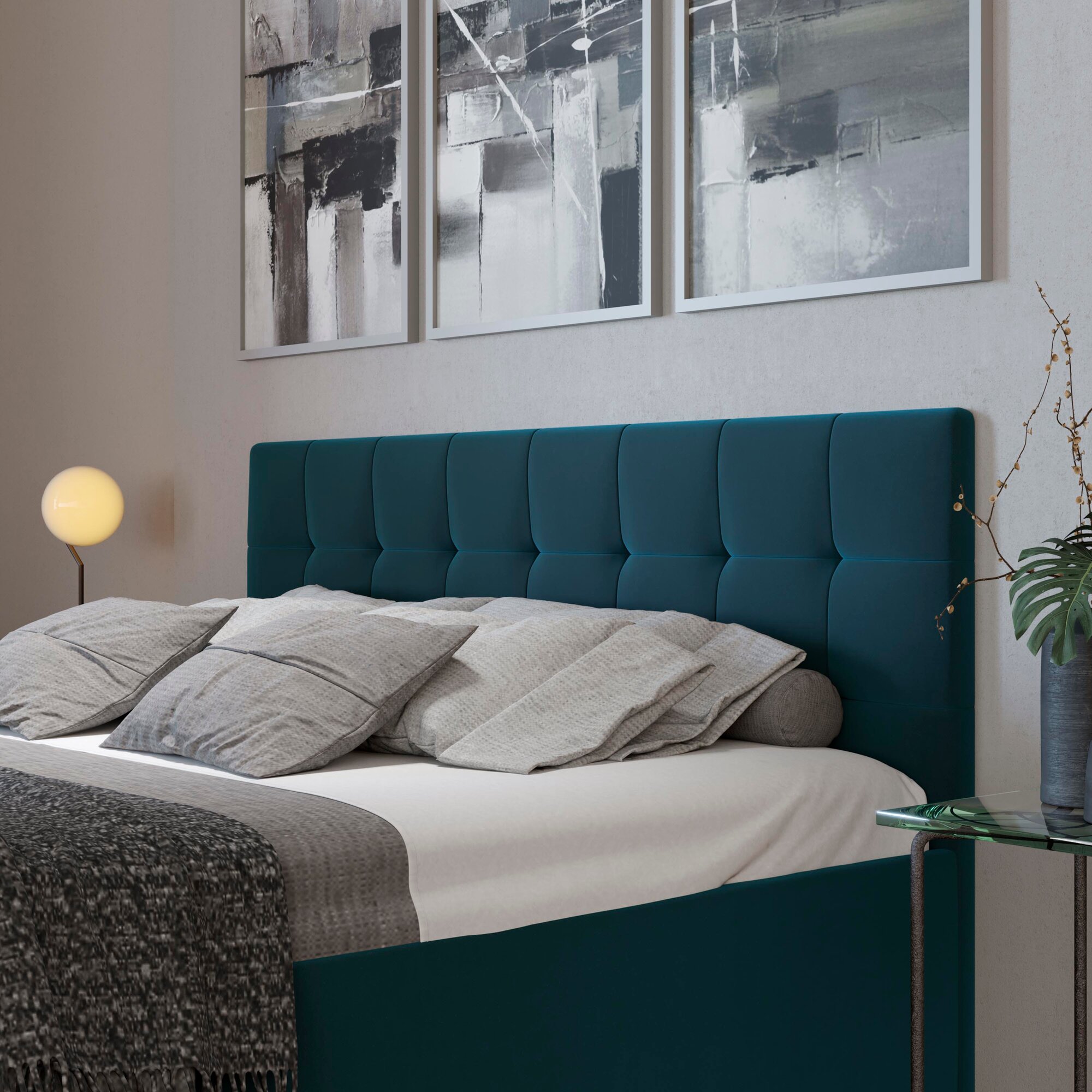 Кровать с подъемным механизмом, с мягкой обивкой и заглушиной синяя 160х200 Эмма (Велюр Confetti Blue)