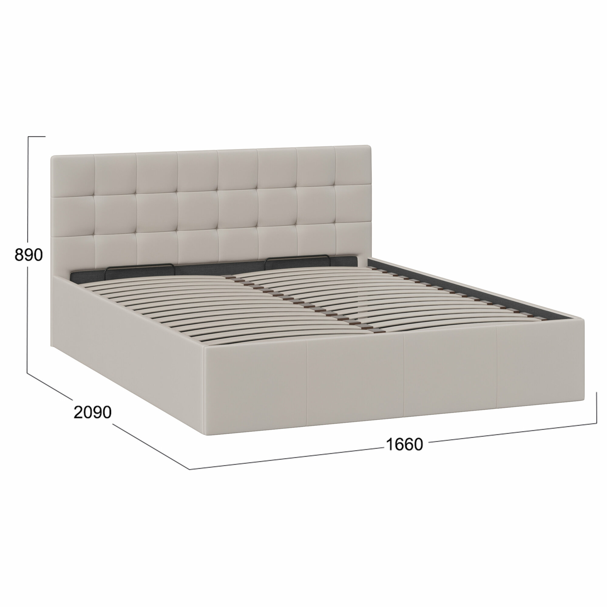 Купить Кровать с подъемным механизмом, с мягкой обивкой и заглушиной бежевая 160х200 Эмма (Велюр Confetti Smoke)