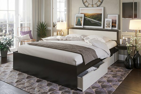 Купить Кровать с ящиками Гармония КР 604, Венге/Белфорд, ЛДСП, с настилом, 1655х780х2035 (1600х2000), стендмебель