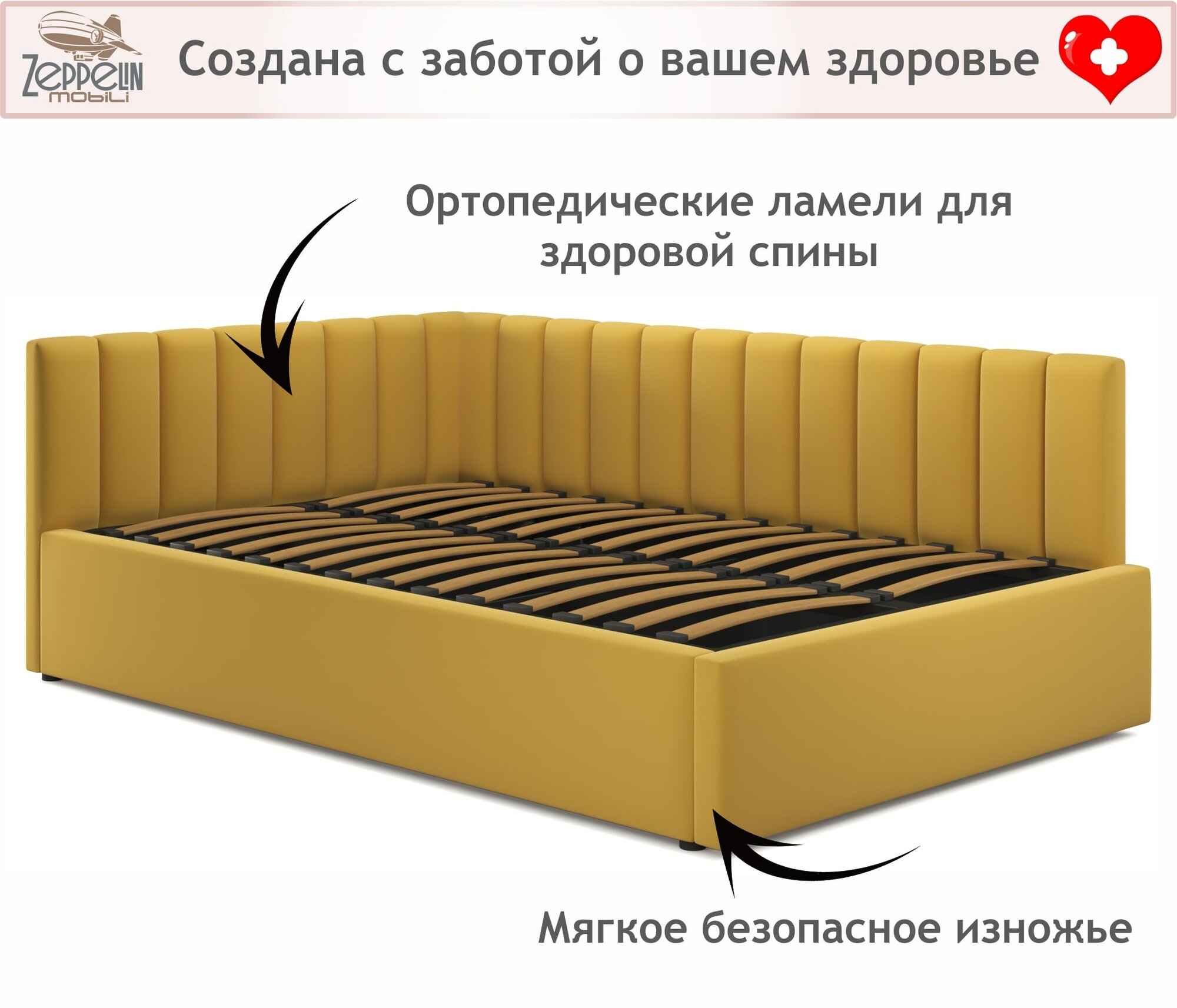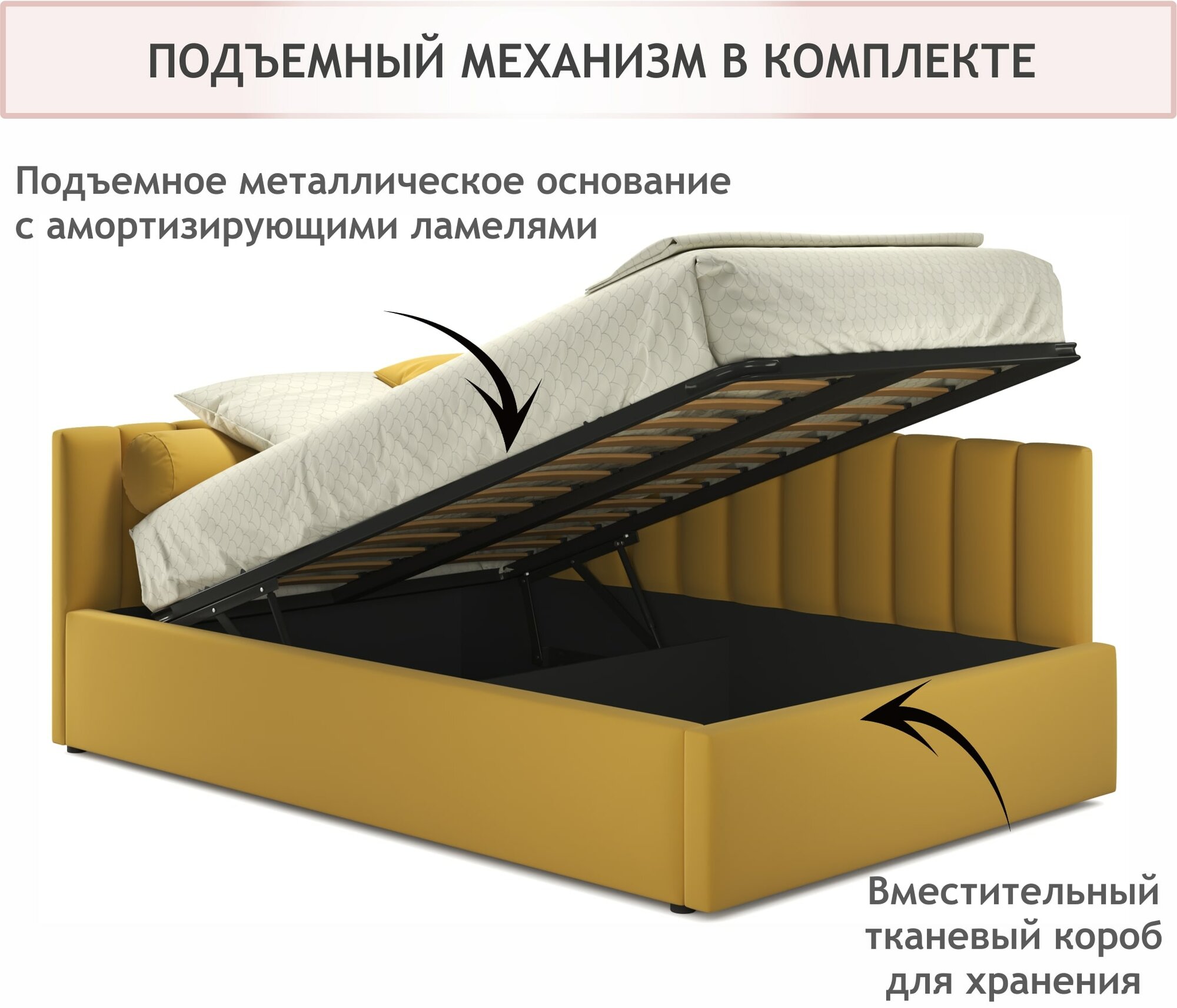 СохранитьКровать-тахта Milena 120х200 желтая подъемная, мягкая спинка из велюра, с ортопедическими ламелями, с ящиком для хранения интересное: