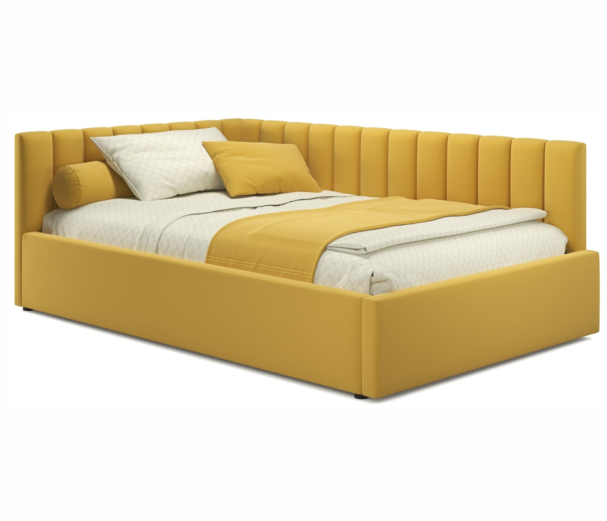 Купить Кровать-тахта Milena 120х200 желтая подъемная, мягкая спинка из велюра, с ортопедическими ламелями, с ящиком для хранения