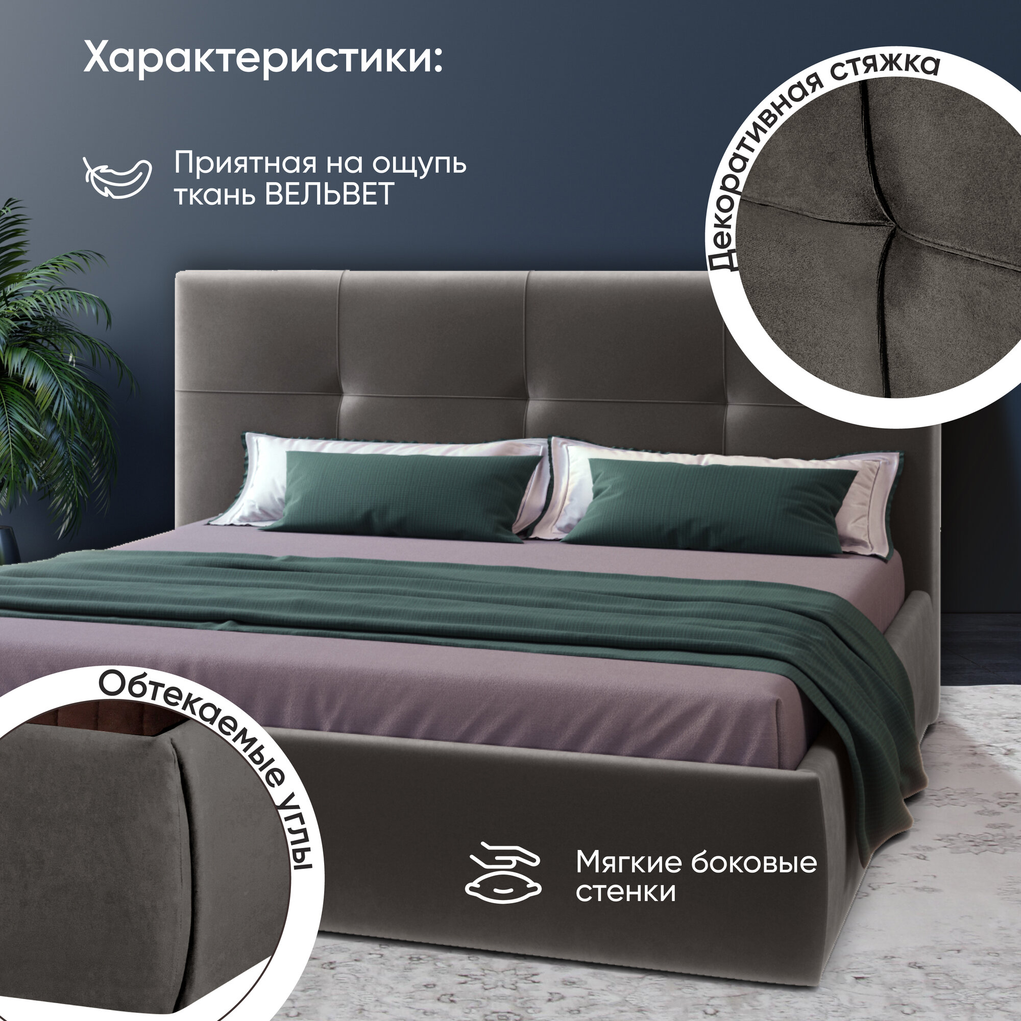 Двуспальная кровать 160х200 см Прима Люкс с подъемным механизмом для дома и спальни, вельвет темно-серый, Ами Мебель