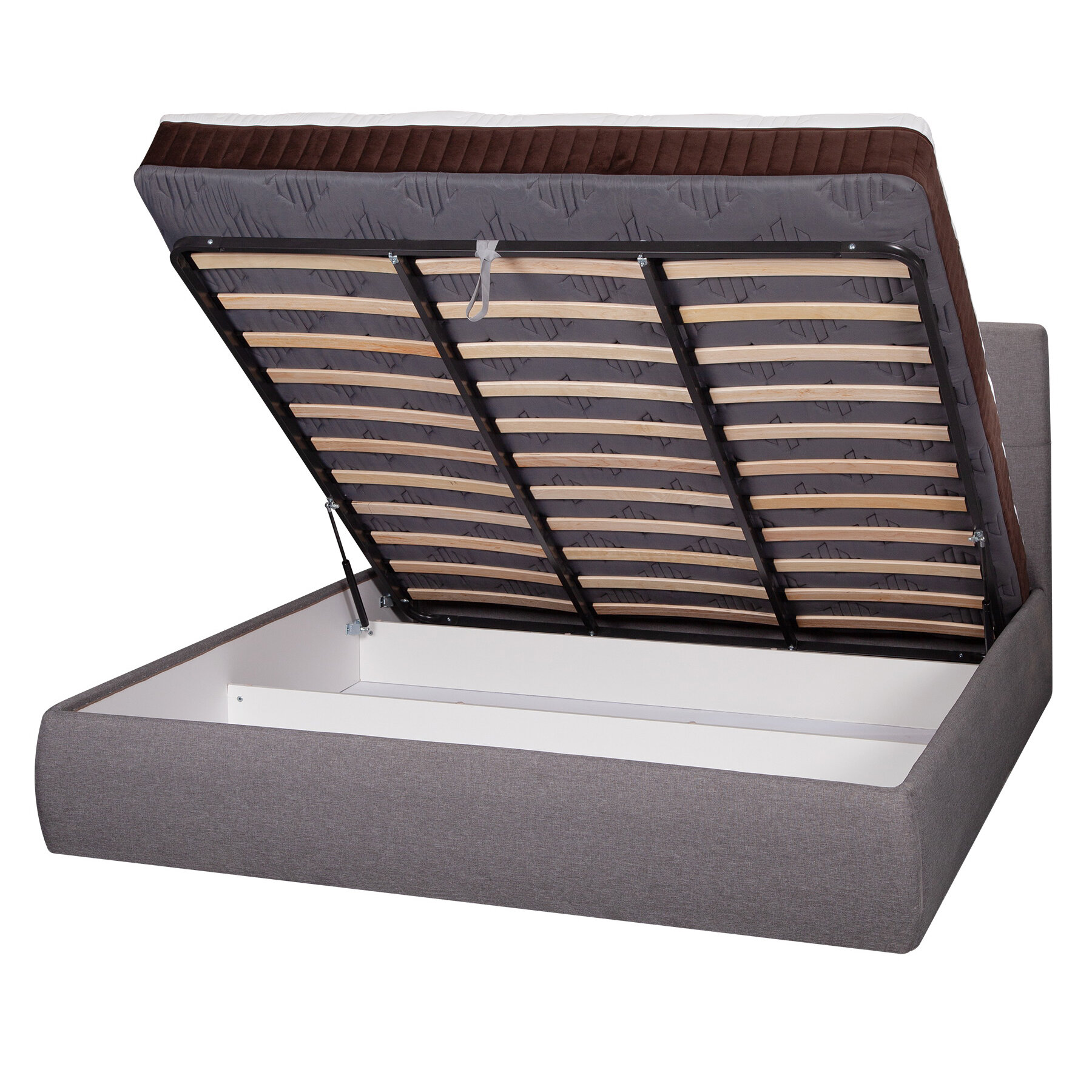 Двуспальная кровать 160х200 см Прима Люкс, подъемный механизм, ортопедическое основание, усиленные ламели, ниша для белья, серая рогожка, Ами Мебель Беларусь