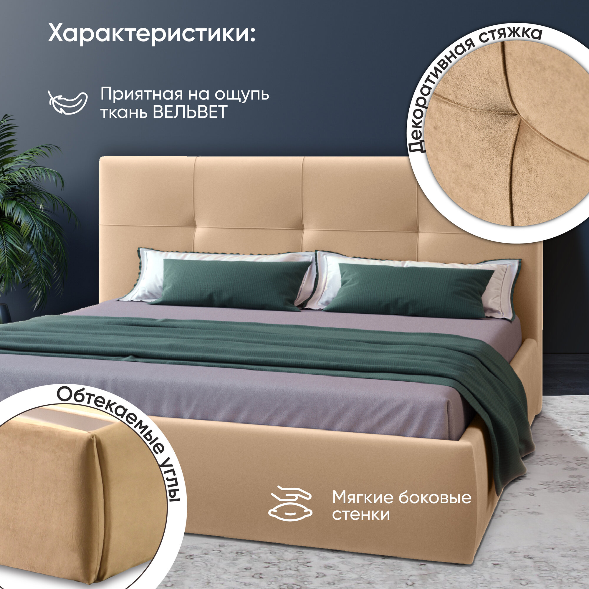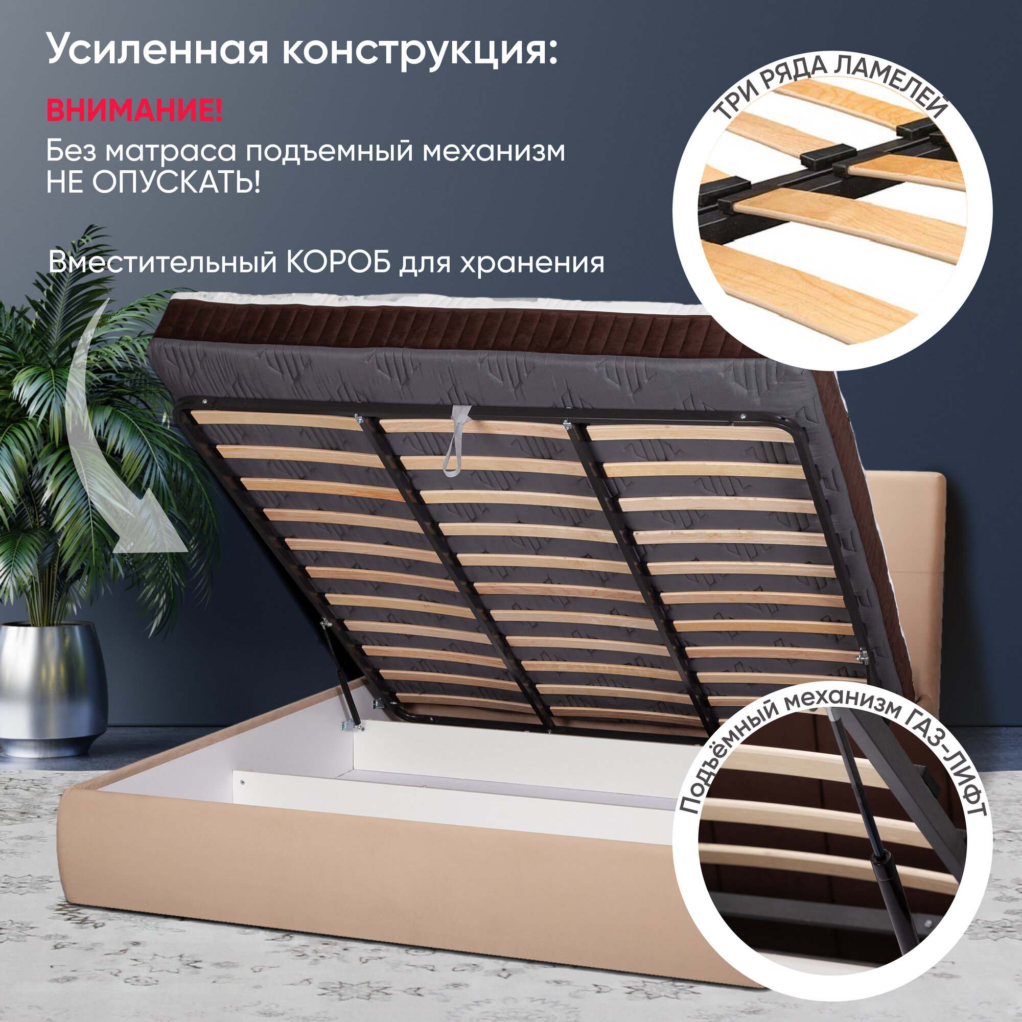 | Особенности | мягкое изголовье, с изножьем, с подъемным механизмом, с ящиком для белья, усиленная конструкция |