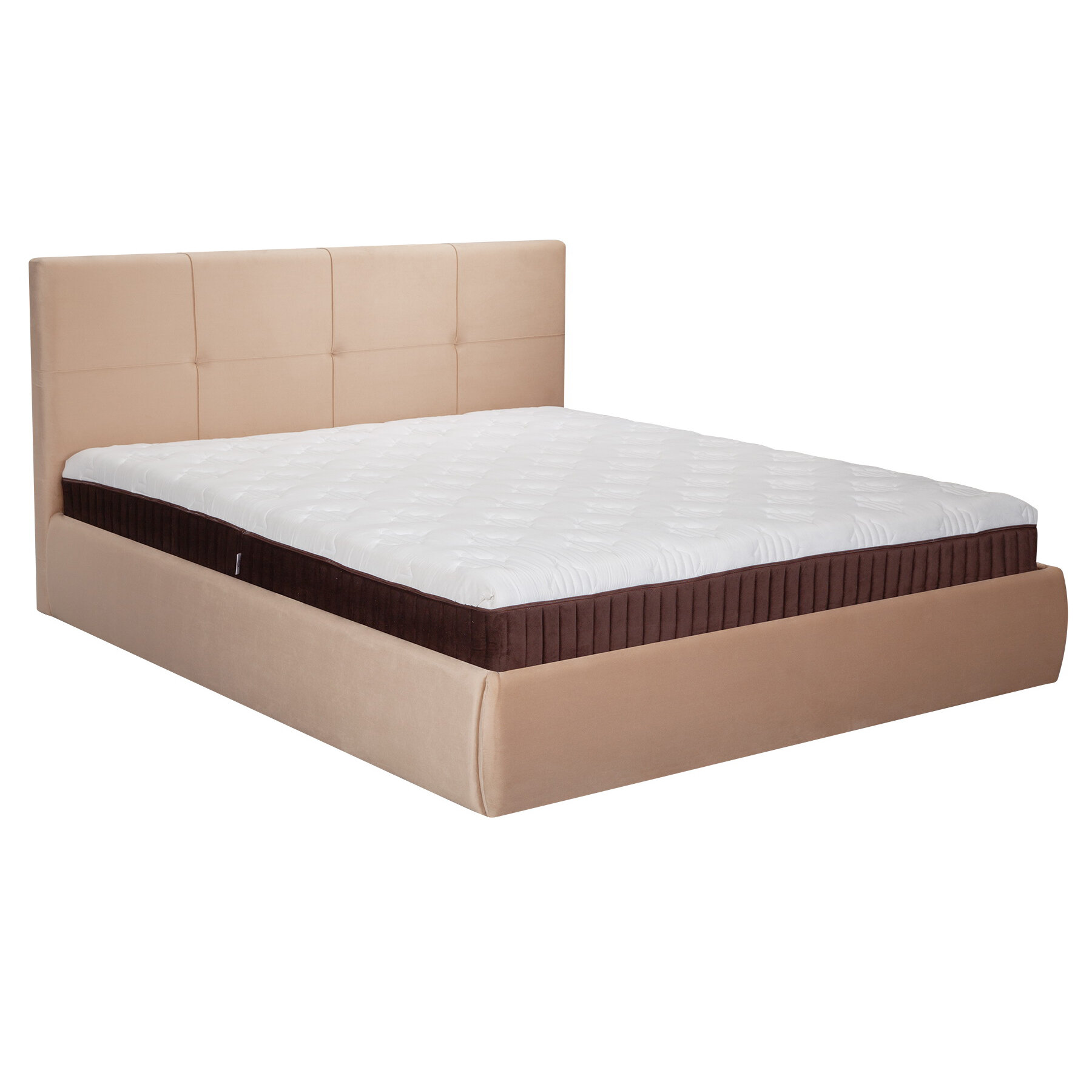 Двуспальная кровать 160х200 см Прима Люкс с подъемным механизмом для дома и спальни, вельвет бежевый, Ами Мебель