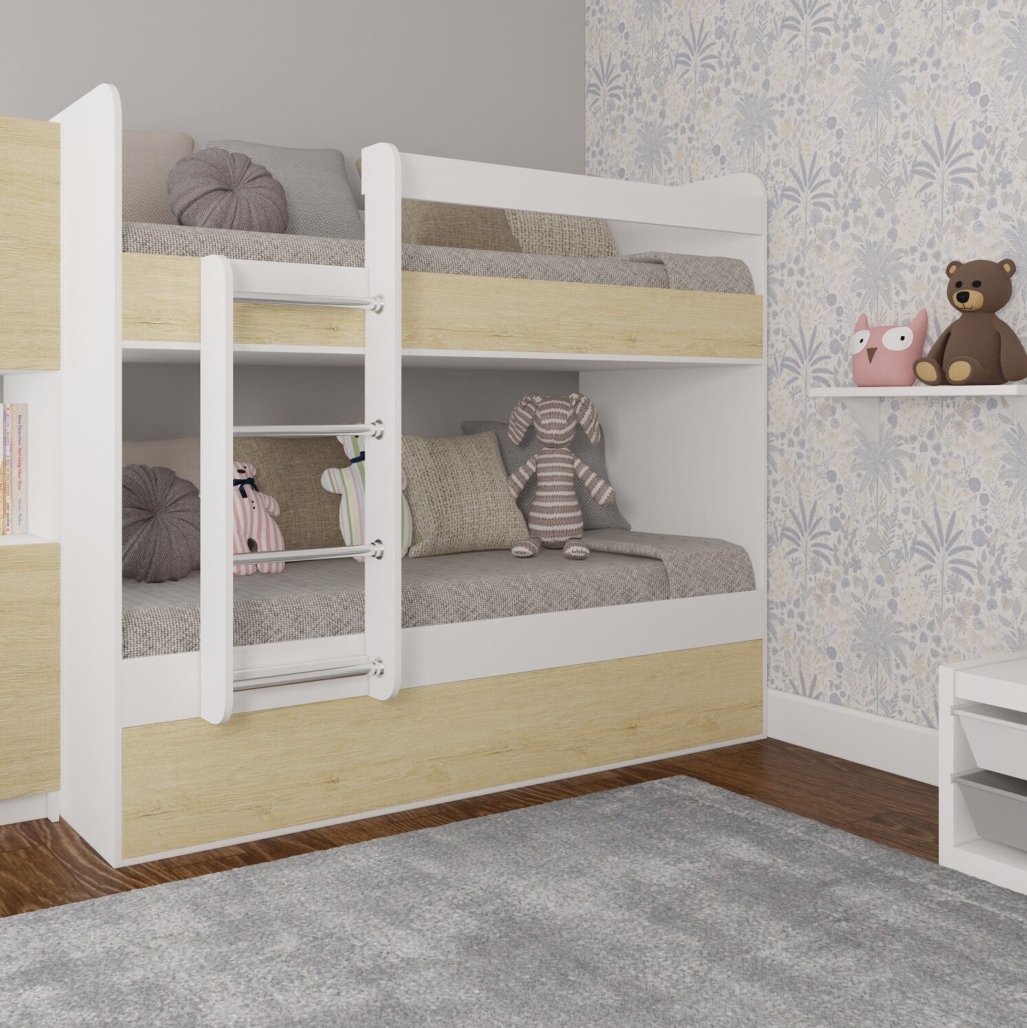 Кровать двухъярусная Есэндвич Лаворо 180х70 см (Анкор белый/Дуб Аризона)