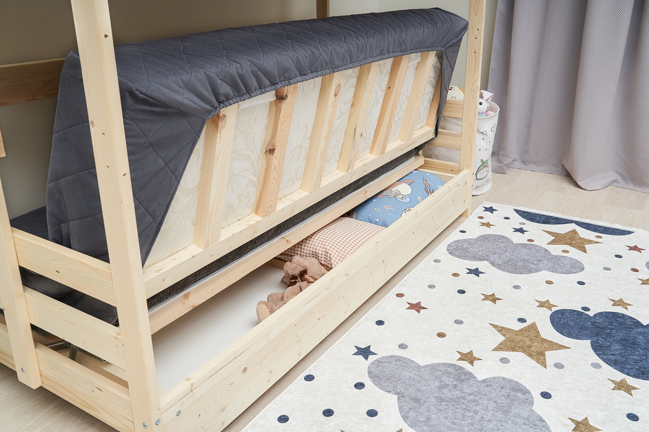 Двухъярусная кровать Боровичи-Мебель Массив с диван-кроватью; ПББ; велюр серый / натуральный 96x197x170 см интересное: