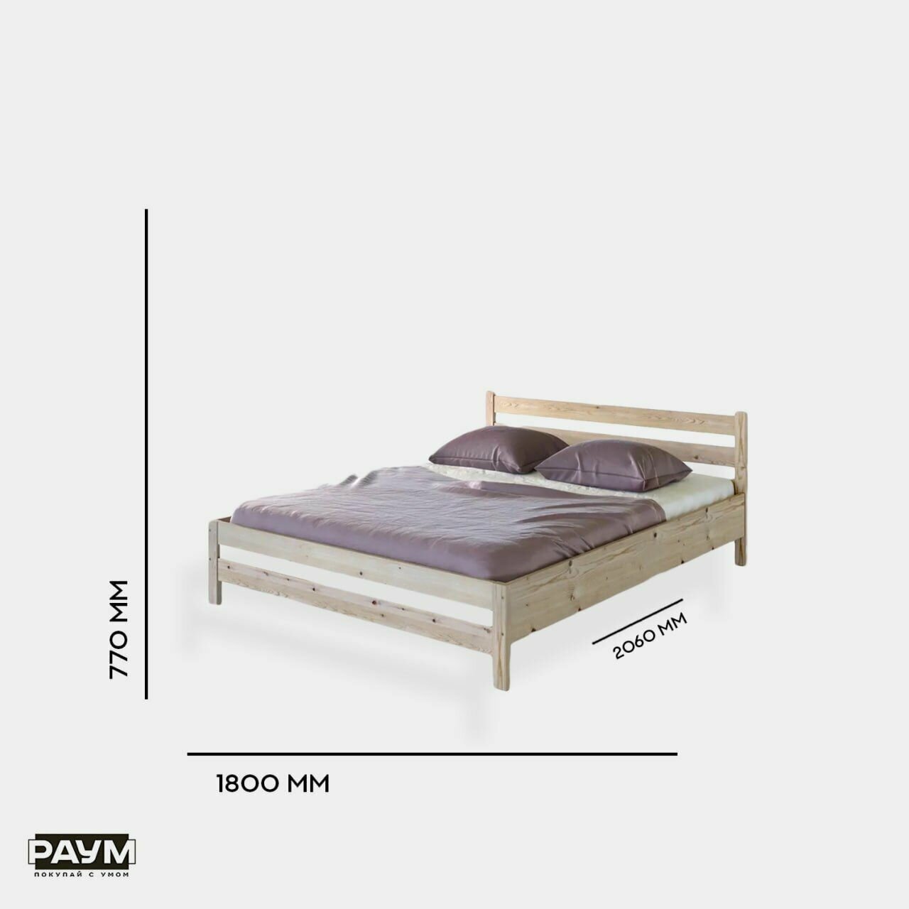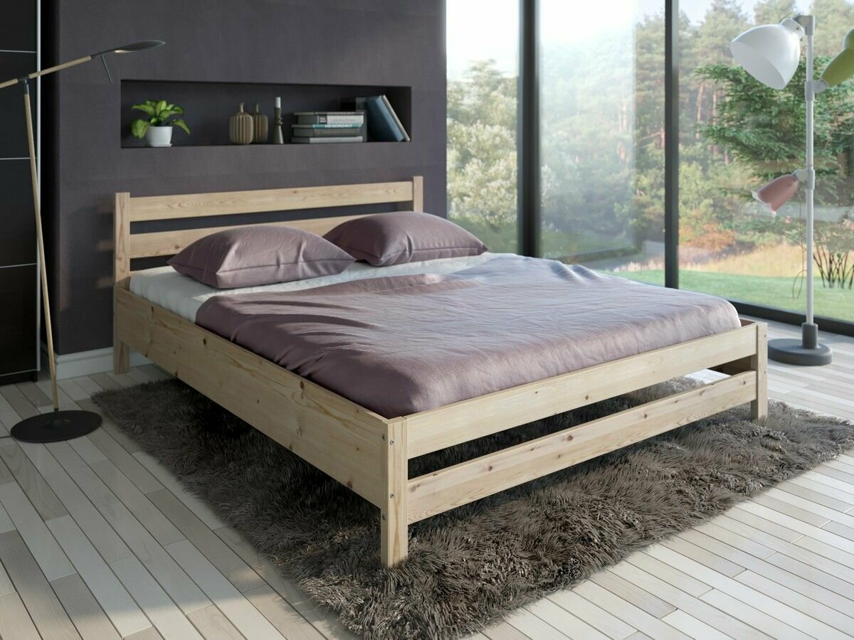 Раум покупай с умом / Кровать двуспальная из массива сосны Карелия МС-21/1, спальное место 1400х2000, габарит 1460х2060х1000