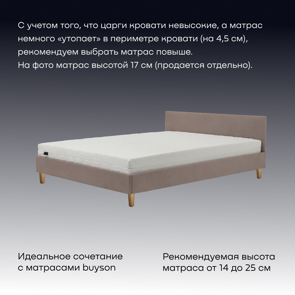 Двуспальная кровать buyson BuyStyle 200х160 см, микровелюр, бежевый